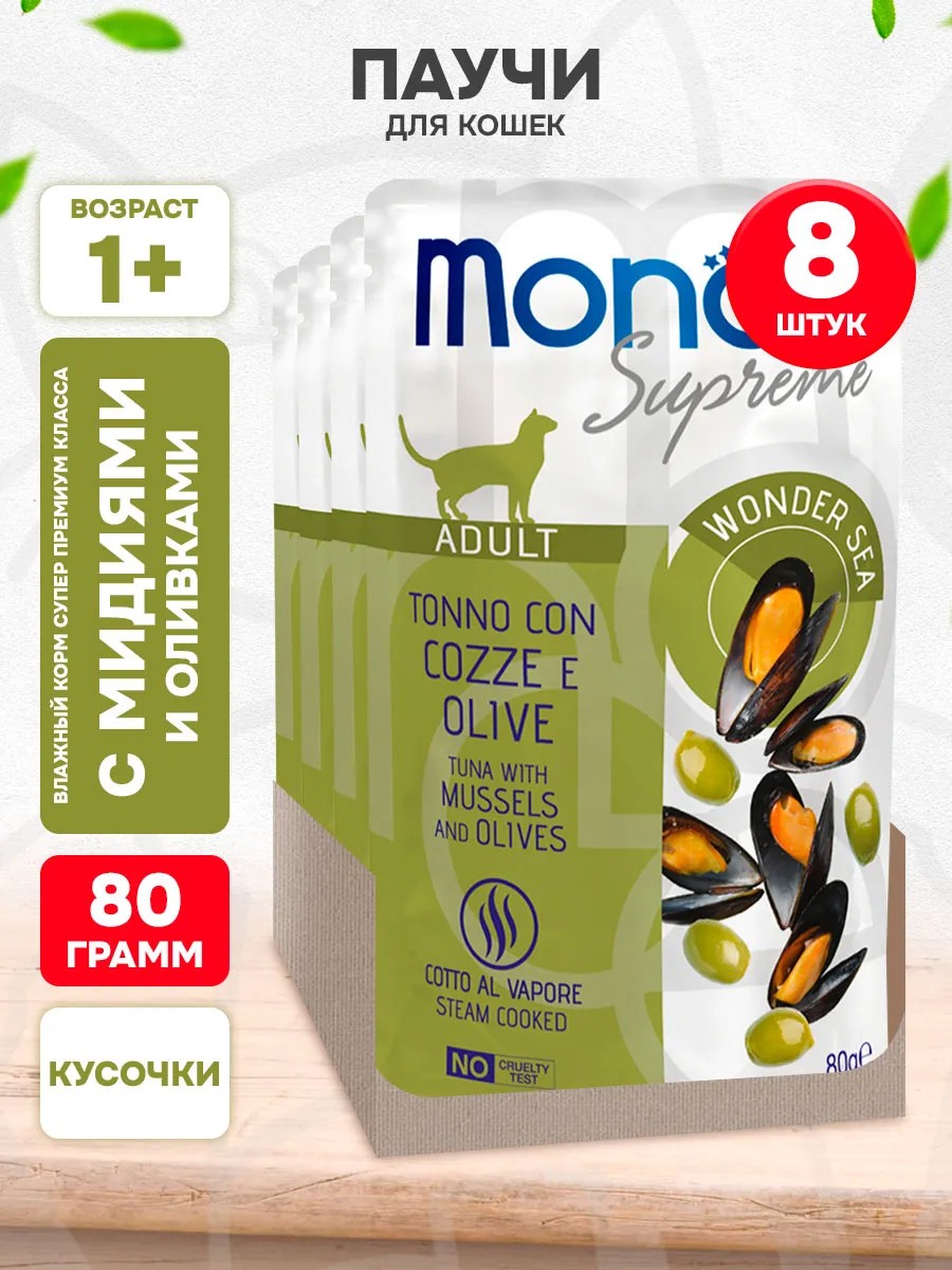 Корм влажный Supreme для кошек мидии оливки 80 г 8 шт