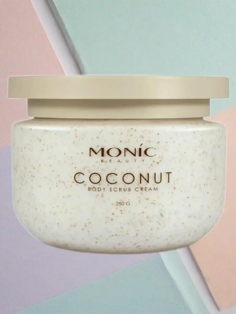 Monic Beauty Крем скраб для тела Кокос 250 мл.Крем-скраб для тела Кокос Pure Harmony – это средство для комплексного ухода за кожей тела. Формула разработана для бережного отшелушивания ороговевших клеток эпидермиса и эффективного очищения от загрязнений и излишков себума. Скрабирующие частицы деликатно полируют кожу, выравнивая ее текстуру. Масло кокоса питает и увлажняет кожу, помогая поддерживать естественный гидробаланс и делая ее более мягкой и гладкой. Сквалан обладает смягчающими и увлажняющими свойствами, способствуя восстановлению липидного барьера кожи. Экстракт софоры оказывает антиоксидантное действие. В качестве абразива используется миндальная косточка, обеспечивающая деликатное отшелушивание.Способ применения;Нанесите скраб на влажную и чистую кожу. Аккуратно массируйте скраб в течение 5-10 минут. Смойте средство теплой водой. Используйте увлажняющий крем или лосьон для усиления увлажняющего эффекта. Зафиксируйте влагу с помощью увлажняющего крема или лосьона. Используйте скраб 1-2 раза в неделю.
