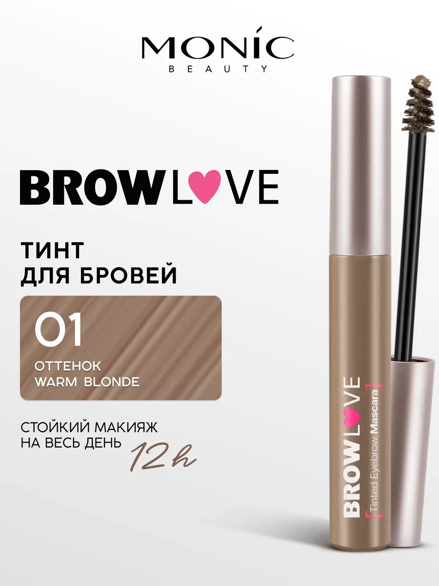 Тушь-тинт для бровей Monic Beauty(Моник бьюти) BROW LOVE тон 01 Warm Blonde обладает гелевой текстурой, придает насыщенный оттенок, увеличивает объем и густоту, обеспечивая стойкую фиксацию. Удобная густая щеточка позволяет точно моделировать форму, создавая эффект густых и ухоженных бровей.