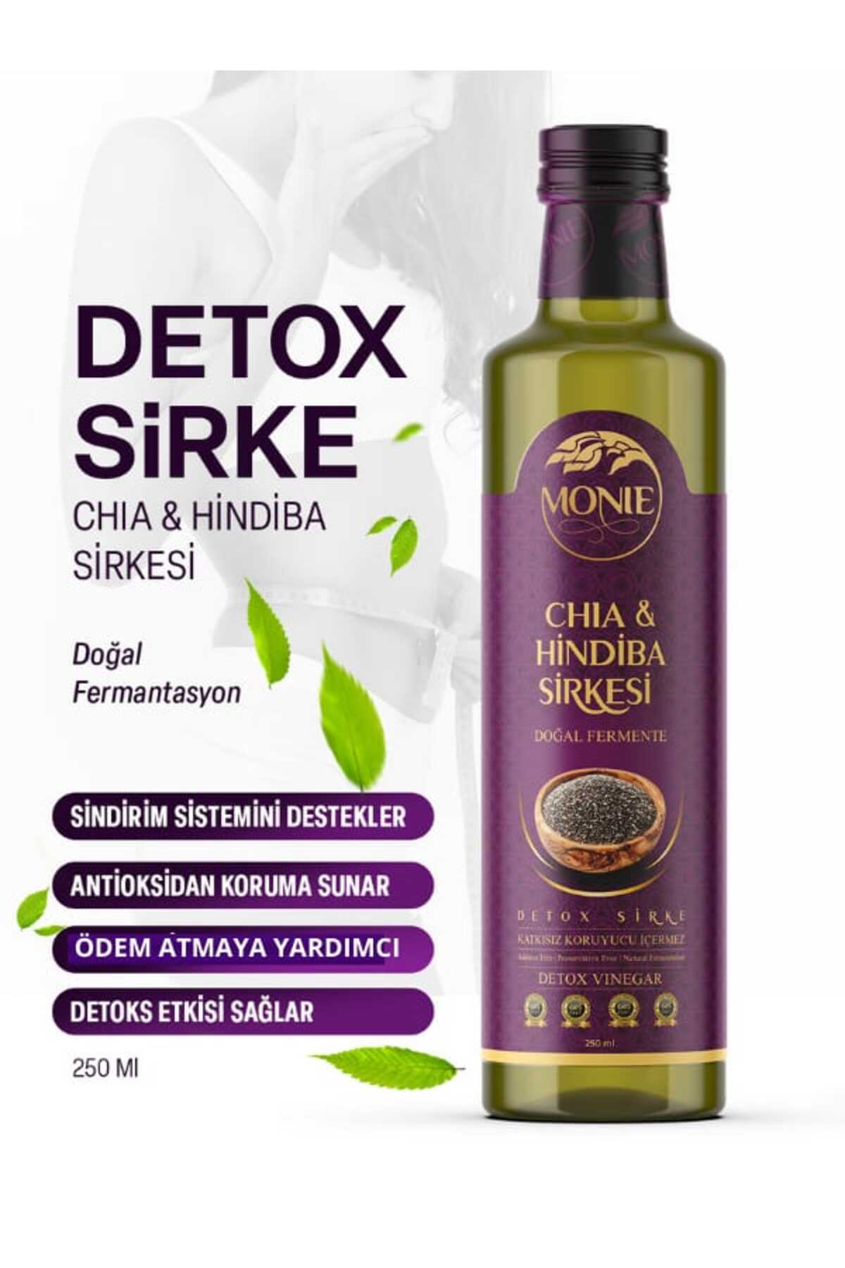 Chia seed chicory vinegar, detox vinegar 250 ml is not a medicine. Contents: Chia seed, chicory. Usage: You can use it by adding 1 tablespoon of monie, chia seed chicory vinegar to 1 glass of warm water at least half an hour before meals in the morning and evening.