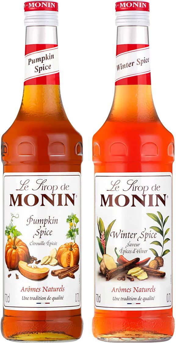 MONIN - Assortiment Sirop de Citrouille Saveur Epic e & Sirop Saveur Epices d'Hiver - Pour Caf Chocolat Chaud Capuccino ou Latte - Ar mes Naturels - Bouteille en Verre - 2 x 70 cl