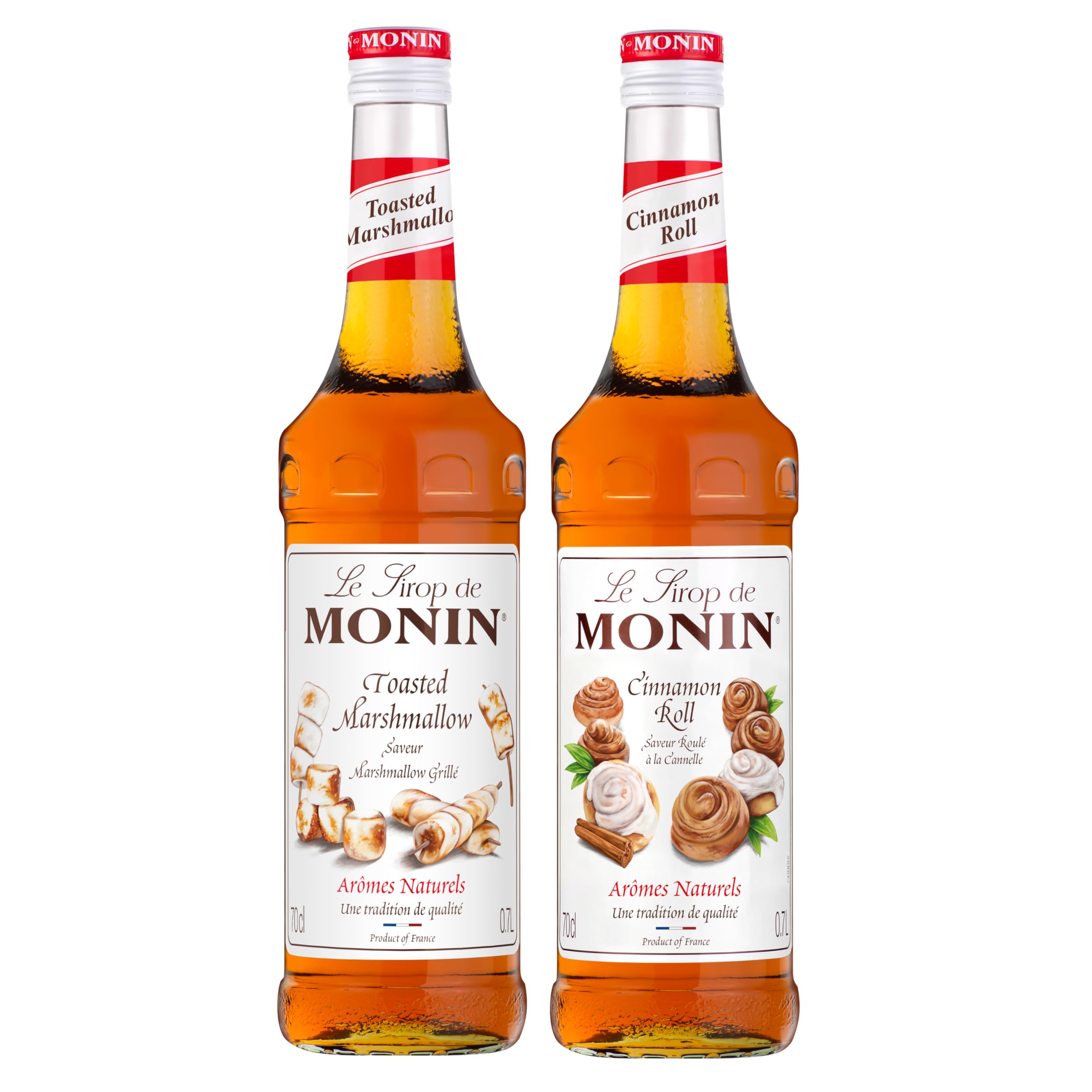 MONIN - Assortiment Sirop Saveur Marshmallow Grill & Sirop Saveur Roul la Cannelle - Pour Caf Chocolat Chaud Capuccino ou Latte - Ar mes Naturels - Bouteille en Verre - 2 x 70 cl
