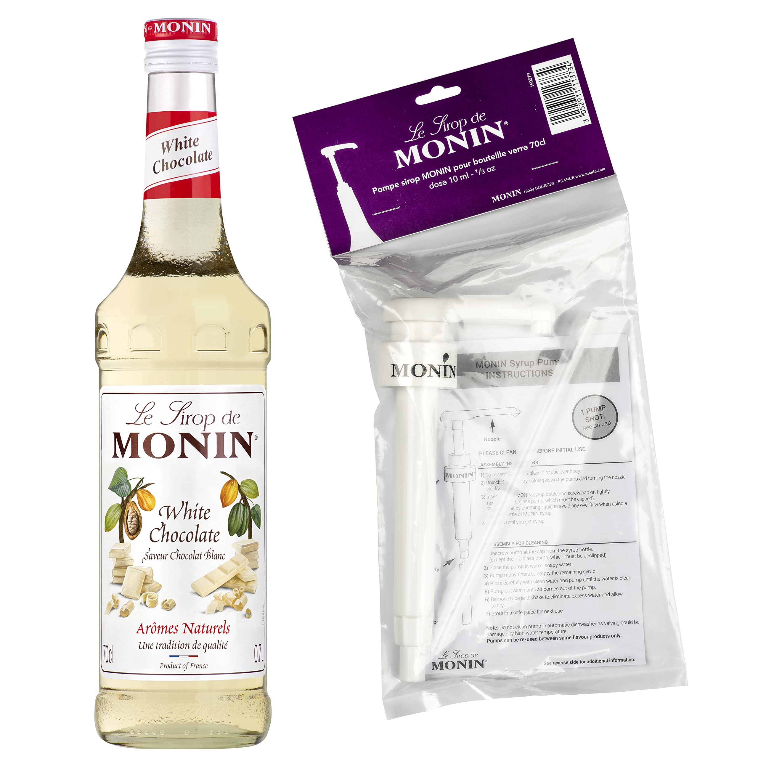 MONIN White Chocolate Syrup 70cl for Hot Beverages Coffee Latte Cappuccino Chocolate + 1 Dosing Pump 1cl - Natural Flavours