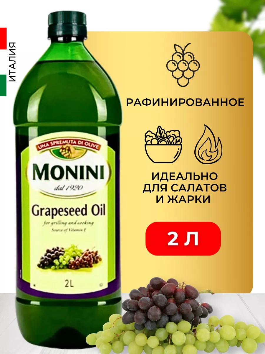 Monini Масло виноградной косточки рафинированное пищевое 2л пластик
