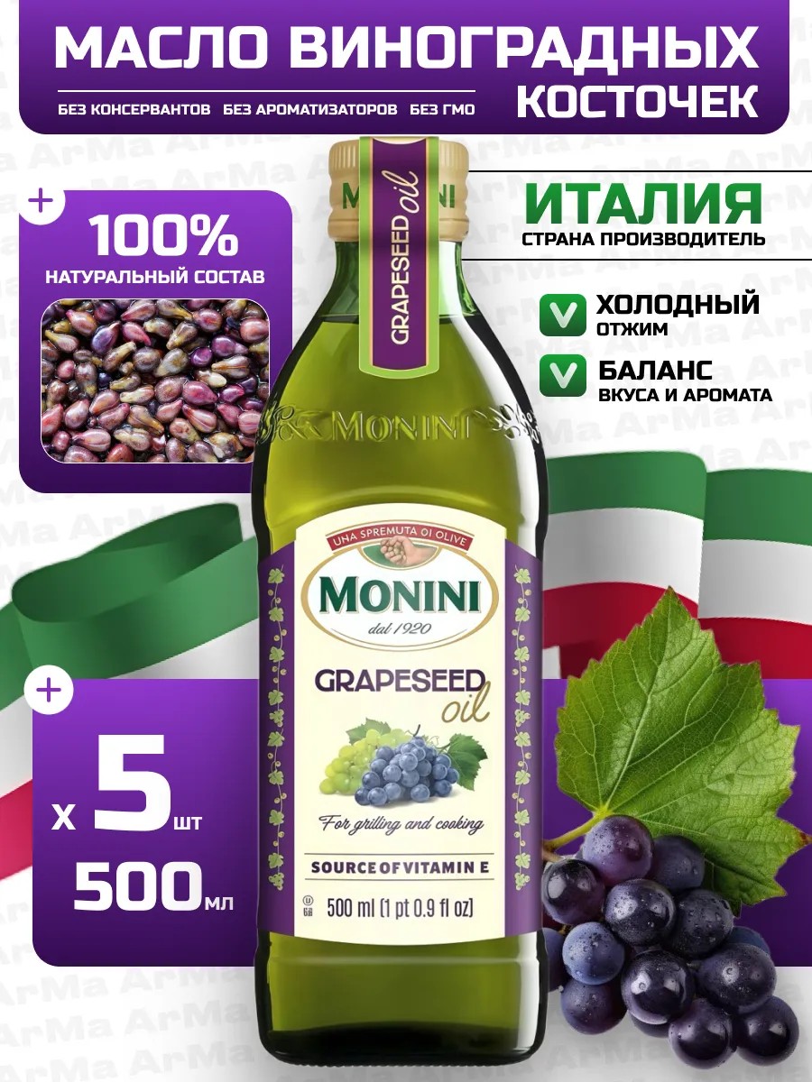 Monini Продукты Масло виноградной косточки пищевое для жарки 500/5