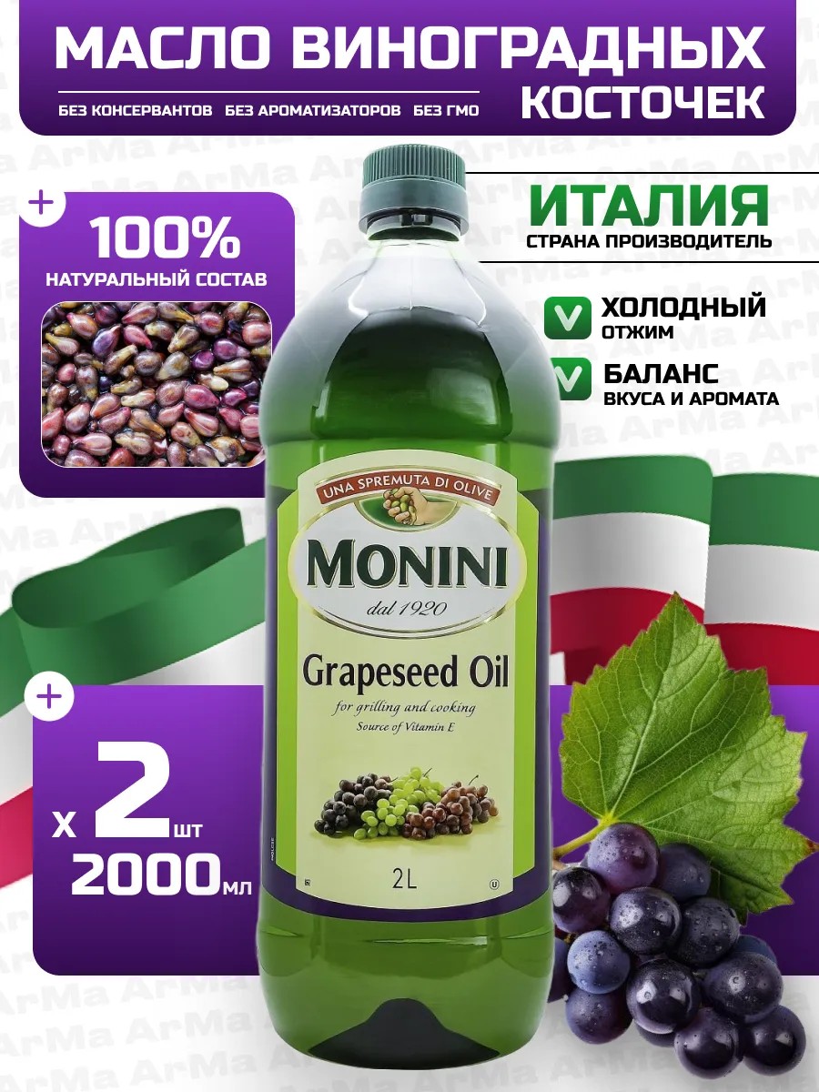 Monini Продукты Масло виноградной косточки пищевое и для массажа лица 2000/2
