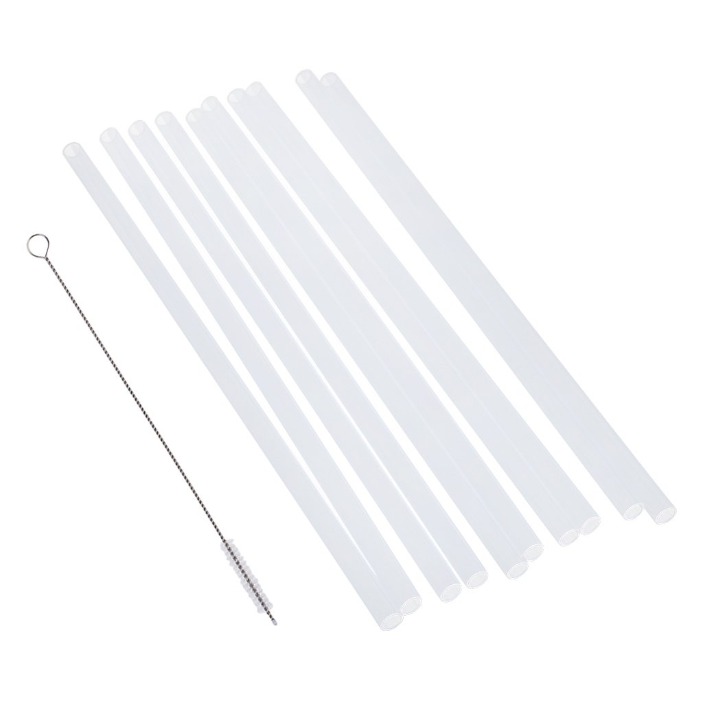 MonkeyJack 10 Pieces Reusable Clear Hard Plastic Drinking Straws+1 Piece Cleaning Brush for Mason Jar and Tumblers Home Party Tableware