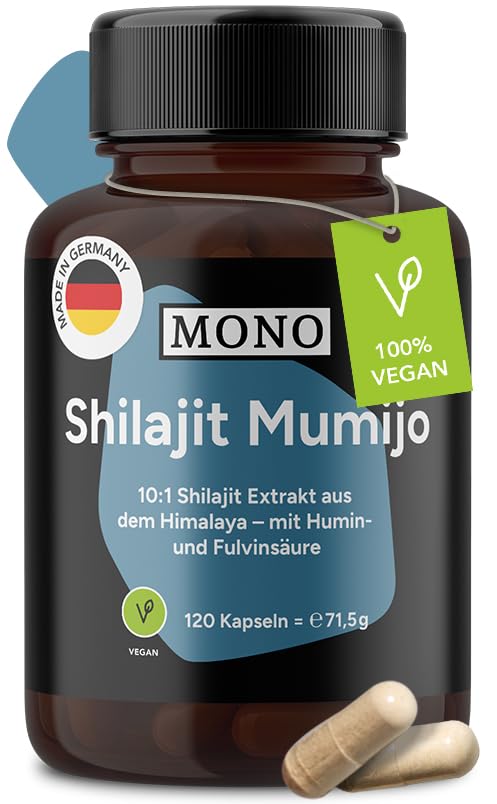 MONO Shilajit Capsules – Extrait de Shilajit original 10:1 avec 92 minéraux naturels – Shilajit Mumijo hautement dosé avec acide fulvinique et humique – 60 jours de traitement Shilajit – Testé et