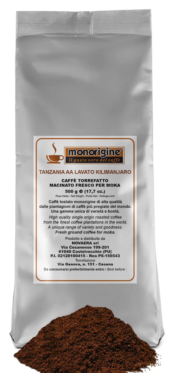 Café Arabica moulu frais pour moka Tanzanie AA Lavé Kilimanjaro 500 gr - Café Monorigine Arabica 100