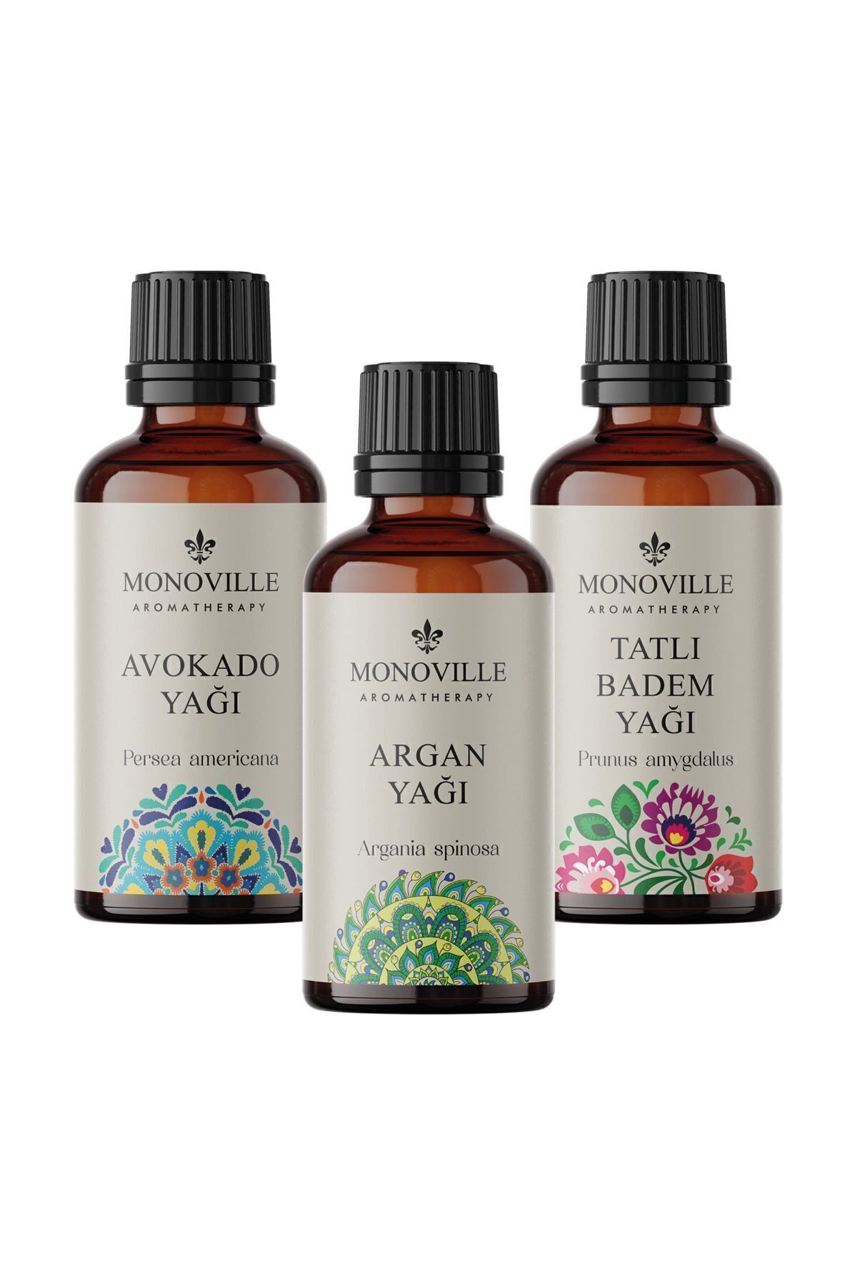 Monoville Argan Oil 30 ml Avocado Oil 30 ml Sweet Almond Oil 30 ml Set of 3 0 Pure and Natural 3x30 ml