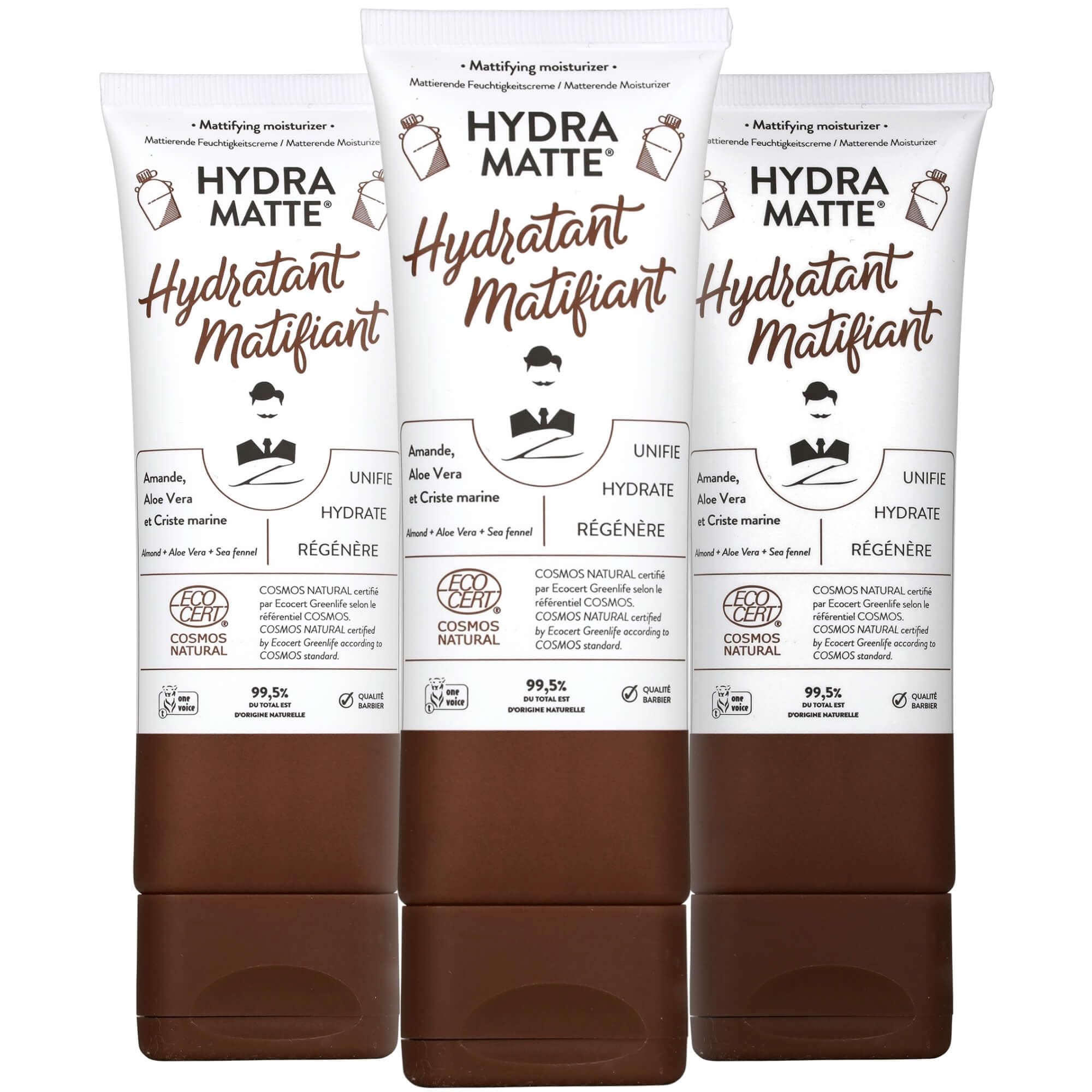 Natural and vegan facial moisturizer for men, made in France. Formulated with aloe vera, sweet almond oil, and sea fennel extract to hydrate, regenerate, and mattify without leaving a greasy residue. SAFETY WARNING For external use only.