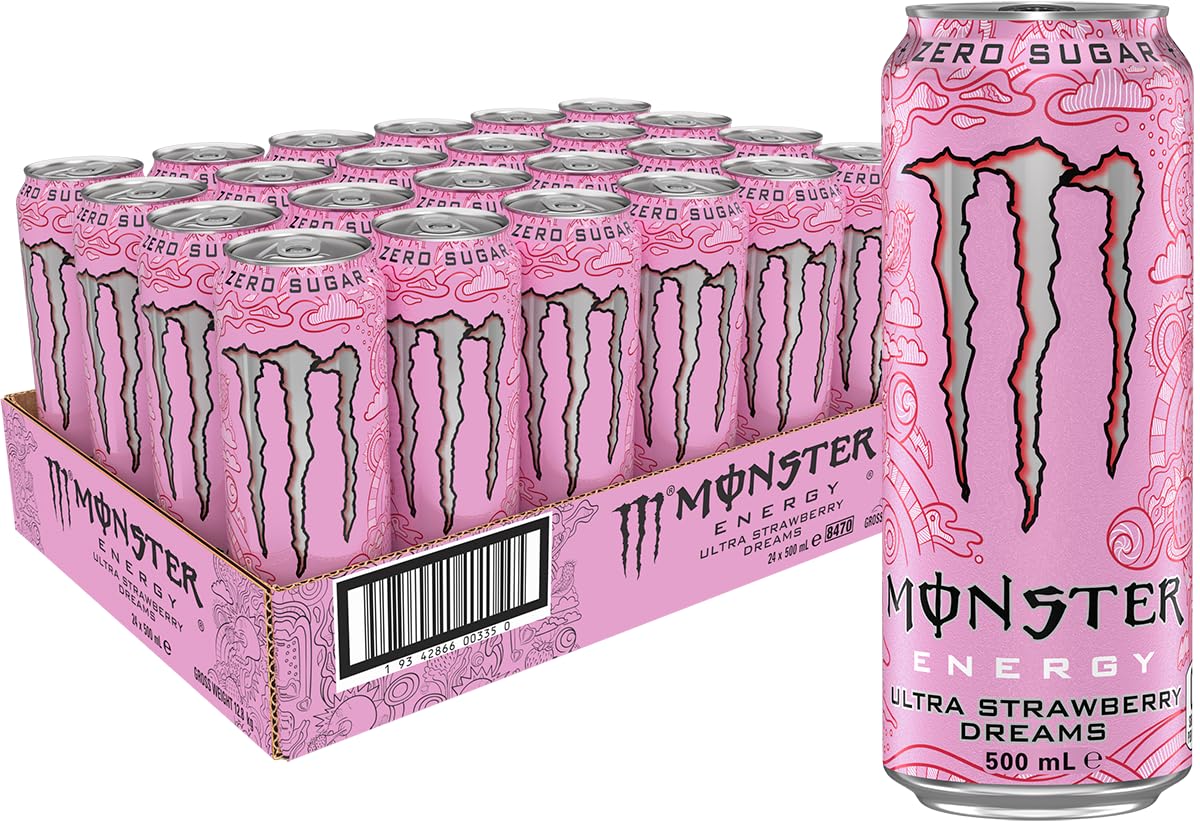 : Some people swear that strawberries are an aphrodisiac. They say that if you share a double strawberry with someone, they'll develop feelings for you. All we know is that the heart-shaped fruit is the perfect flavor for our new Zero Sugar Ultra. Wonderfully sweet yet slightly tart, this easy-drinking Ultra tastes like a dream. Made with passion using the Monster Energy blend you crave take a sip and you'll be dreaming of Ultra Strawberry! Ingredients: The caffeinated beverage contains: carbonated water, acidity regulators (citric acid, sodium citrate), sweeteners (erythritol, sucralose, acesulfame potassium), taurine, flavorings, panax ginseng root extract, preservatives (potassium sorbate, sodium benzoate), caffeine, vitamins (niacin 3), vitamin B5. Vitamin B6, Vitamin B12], D-glucuronolactone, guarana seed extract, inositol, colors (Allura Red Ac, Sunset Yellow Fcf, Brilliant Blue Fcf). P.when('A').execute(function(A) { A.on('a:expander:toggle_description:toggle:collapse', function(data) { window.scroll(0, data.expander. expander[0].offsetTop-100) }) }) Safety Warning: This product contains caffeine. Not recommended for children, pregnant or breastfeeding women, or people sensitive to caffeine. See morePlease recycle. 10 refunds at collection points depots in the participating state territory of purchase. Volume: 500 ml. Drink responsibly: limit daily intake to 1 can. Product contains caffeine. Not recommended for children, pregnant or breastfeeding women, or those sensitive to caffeine. Made in Australia. Wonderfully sweet strawberry flavor with a hint of tartness. Unleash the beast. Tear open a can of the meanest energy drink on the planet, Monster Energy. Monster High Caffeine Energy Drink.Description du produit Certaines personnes jurent que les fraises sont aphrodisiaques. Ils disent que si vous partagez une double fraise avec quelqu'un, ils ressentiront des sentiments pour vous. Tout ce que nous savons, c'est que le fruit en forme de cœur est la saveur parfaite pour notre nouveau zéro sucre Ultra. Merveilleusement sucré tout en étant légèrement acidulé, cet Ultra facile à boire a le goût d'un rêve. Fabriqué avec passion avec le mélange Monster Energy dont vous avez envie prenez une gorgée et vous serez fou de rêves Ultra Strawberry ! Ingrédients La boisson caféinée contient : eau gazeuse, régulateurs d'acidité (acide citrique, citrate de sodium), édulcorants (érythritol, sucralose, acésulfame potassium), taurine, arômes, extrait de racine de ginseng panax, conservateurs (sorbate de potassium, benzoate de sodium), caféine, vitamines [niacine 3), Vitamine B5. , vitamine B6, vitamine B12], D-glucuronolactone, extrait de graines de guarana, inositol, colorants (Allura Red Ac, Sunset Yellow Fcf, Brilliant Blue Fcf). P.when('A').execute(function(A) { A.on('a:expander:toggle_description:toggle:collapse', function(data) { window.scroll(0, data.expander. expander[0].offsetTop-100) }) }) Avertissement De Sûreté Le produit contient de la caféine. Non recommandé pour les enfants, les femmes enceintes ou allaitantes ou les personnes sensibles à la caféine. Voir plusVeuillez recycler. 10 remboursements dans les dépôts de collecte points dans l'état territoire d'achat participant. Contenance : 500 ml. Consommez de manière responsable : limitez l'apport quotidien à 1 canette. Le produit contient de la caféine. Non recommandé pour les enfants, les femmes enceintes ou allaitantes, ou les personnes sensibles à la caféine. Fabriqué en Australie. Saveur fraise merveilleusement sucrée mais légèrement acidulée. Libérez la bête. Déchirez dans une canette de la boisson énergétique la plus méchante de la planète, Monster Energy. Monster Boisson énergisante à haute teneur en caféine.Monster Energy Drink Ultra Strawberry Dreams 24 x 500 ml