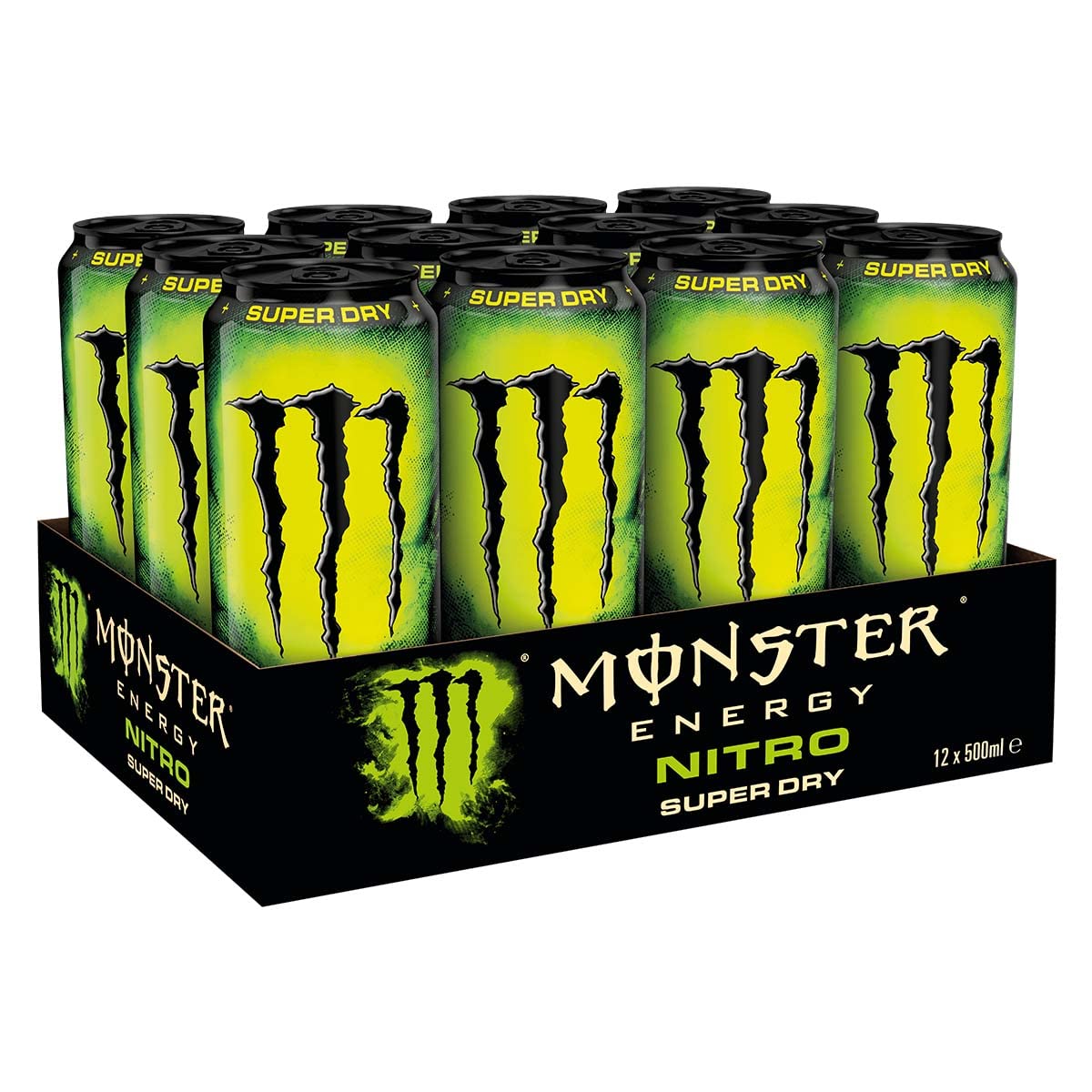 12 cans of Monster Reign Sour Apple a 0.5 l inc. Disposable deposit (deposit of €3 included in the price) Ingredients: water, sugar, glucose syrup, flavourings, acid (citric acid), taurine (0.4 ), acidity regulator (sodium citrate), carbonic acid, Panax Ginseng root extract (0.08 ), foaming agent (nitrogen oxide), maltodextrin, preservative ingredients (potassium sorbate, sodium benzoate), caffeine (0.03 ), vitamin mix (nicotinamide, vitamin B6, riboflavin, vitamin B12), L-carnitine tartrate (0.004 ), sweetener (sucralose), inositol, colour (E 133). Nutritional information per 100 ml g: Energy value in kJ 198 kJ, Energy value in kcal 47 kcal, Fat 0 g of which saturates 0 g, Carbohydrate 12 g of which sugars 11 g, Protein 0 g, Salt 0.21 g, Vitamin niacin 8.5 mg 53 , Vitamin riboflavin (Vitamin B2) 0.7 mg 50 , Vitamin B12 2.5 µg 100 , Vitamin B60.8 mg 57 . We generally emphasize that when consuming energy drinks in large quantities, especially in conjunction with strenuous physical activity or the consumption of alcoholic beverages, adverse effects cannot be ruled out. Furthermore, energy drinks are not recommended for children, pregnant or breastfeeding women, or individuals sensitive to caffeine due to their (increased) caffeine content. Furthermore, patients with hypertension or heart disease should exercise caution when consuming energy drinks. It is essential to observe the manufacturer's warnings for the specific product on the product packaging. Manufacturer's address: Paschenbergstraße 30, 45699 Herten SAFETY WARNING To avoid adverse effects, it is recommended to consume energy drinks in moderation, especially in combination with alcohol or during intense physical activity. Energy drinks are not suitable for children, pregnant or breastfeeding women, or individuals sensitive to caffeine. Patients with hypertension or heart disease should exercise caution when consuming energy drinks. This product contains taurine, L-carnitine, and caffeine.Monster Energy Nitro Super Dry - 0,5 l avec consigne jetable Monster Energy (12 x 0,5 l)DESCRIPTION DU PRODUIT DESCRIPTION DU PRODUIT 12 boîtes Monster Reign Sour Apple a 0,5 l inc. Consigne jetable (consigne de 3 € incluse dans le prix) Ingrédients : eau, sucre, sirop de glucose, arômes, acidifiant (acide citrique), taurine (0,4 ), régulateur d'acidité (citrate de sodium), acide carbonique, extrait de racine de Panax Ginseng (0,08 ), agent moussant (oxyde d'azote), maltodextrine, conservateur Ingrédients (sorbate de potassium, benzoate de sodium), caféine (0,03 ), mélange de vitamines (nicotinamide, vitamine B6, riboflavine, vitamine B12), tartrate de L-carnitine L (0,004 ), édulcorant (sucralose), inosit, colorant (E 133). Informations nutritionnelles par 100 ml g Valeur énergétique en kj 198 kJ Valeur énergétique en kcal47 kcal Matières grasses 0 g dont acides gras saturés 0 g Glucides 12 g dont sucre 11 g protéines 0 g sel 0,21 g vitamine niacine 8,5 mg 53 vitamine riboflavine (vitamine B2) 0,7 mg 50 Vitamine B12. 2,5 µg 100 de vitamine B60,8 mg 57 . Nous soulignons généralement que lors de la consommation de boissons énergisantes en grandes quantités, en particulier en lien avec une activité sportive abondante ou la consommation de boissons alcoolisées, les effets indésirables ne peuvent pas être exclus. En outre, les boissons énergisantes ne sont pas recommandées pour les enfants, les femmes enceintes, les allaitantes et les personnes sensibles à la caféine en raison de leur teneur en caféine (augmentée). En outre, les patients souffrant d'hypertension ou de maladies cardiaques doivent pratiquer la retenue lors de la consommation de boissons énergisantes. Veuillez impérativement respecter les avertissements du fabricant relatifs au produit respectif sur l'emballage respectif du produit. Inscription du fabricant : Paschenbergstraße 30, 45699 Herten AVERTISSEMENT DE SÉCURITÉ Pour éviter les effets indésirables, il est recommandé de consommer des boissons énergisantes avec modération, en particulier en combinaison avec de l'alcool ou lors d'une activité sportive intense. Les boissons énergisantes ne conviennent pas aux enfants, aux femmes enceintes, qui allaitent et aux personnes sensibles à la caféine. Les patients souffrant d'hypertension ou de maladies cardiaques doivent pratiquer la retenue lors de la consommation de boissons énergisantes. Ce produit contient de la taurine, de la L-carnitine et de la caféine.