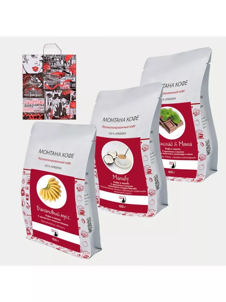 Монтана Кофе Кофе в зёрнах Монтана Банан+Малибу+Шоколад+Пакет (3*100)
