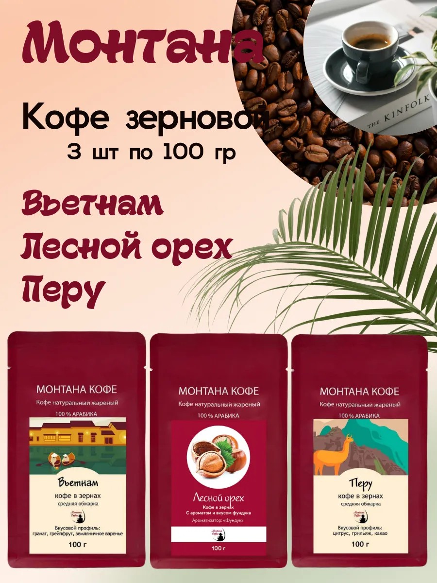 Кофе сет (в зёрнах) 300 гр (3*100г): Лесной орех / Перу / Вьетнам - Монтана