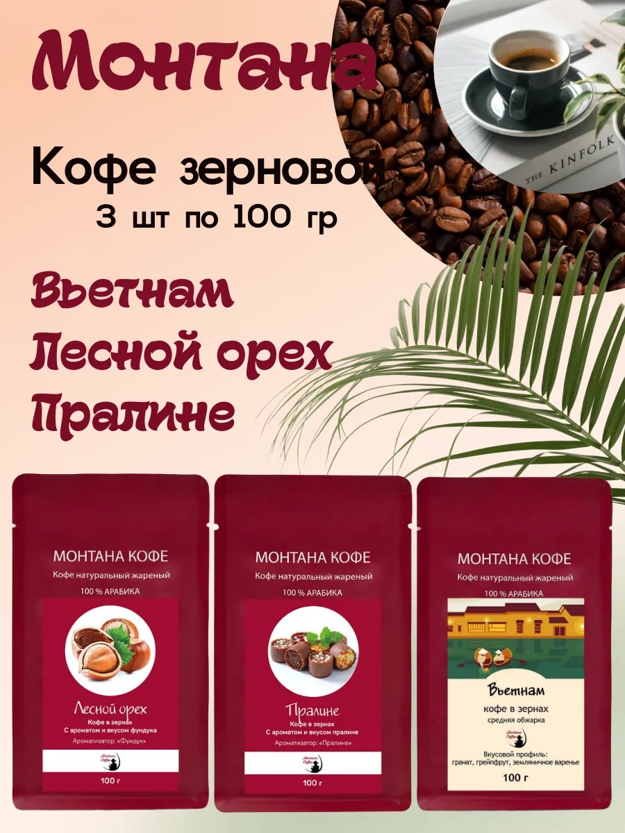 Кофе сет (в зёрнах) 300 гр (3*100г): Лесной орех / Пралине / Вьетнам - Монтана