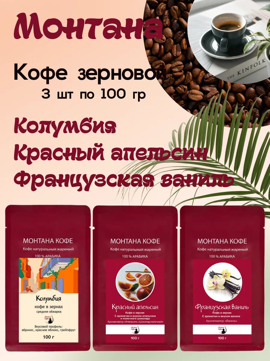 Кофе сет (в зёрнах) 300 гр (3*100г): Французская ваниль / Красный апельсин / Колумбия - Монтана
