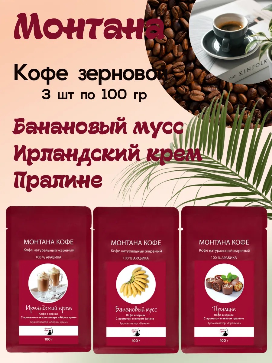 Кофе сет (в зёрнах) 300 гр (3*100г): Ирландский крем / Пралине / Банановый мусс - Монтана