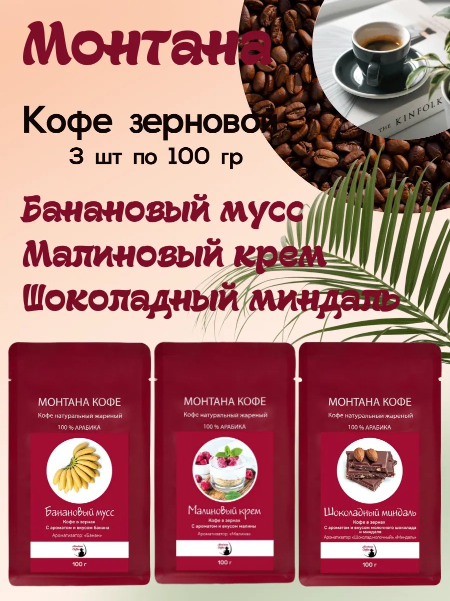 Кофе сет (в зёрнах) 300 гр (3*100г): Малиновый крем / Шоколадный миндаль / Банановый мусс - Монтана