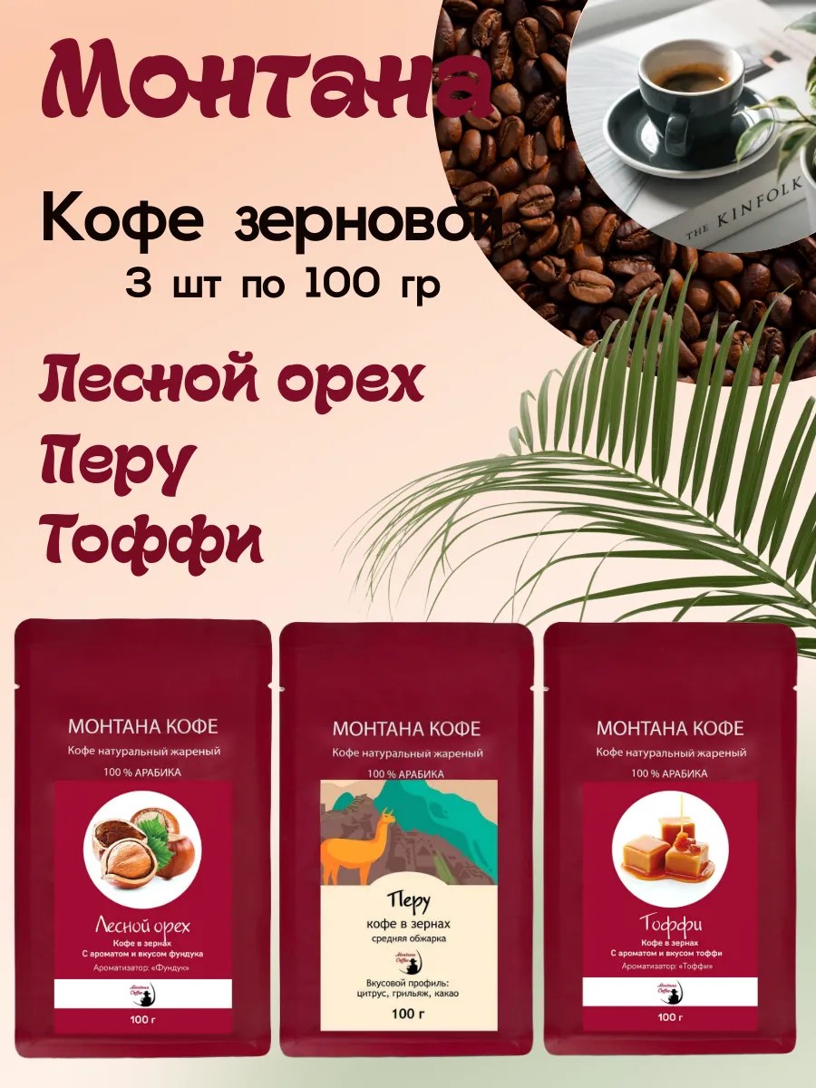 Кофе сет (в зёрнах) 300 гр (3*100г): Лесной орех / Тоффи / Перу - Монтана