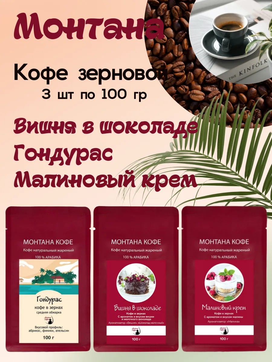 Кофе сет (в зёрнах) 300 гр (3*100г): Малиновый крем / Вишня в шоколаде / Гондурас - Монтана