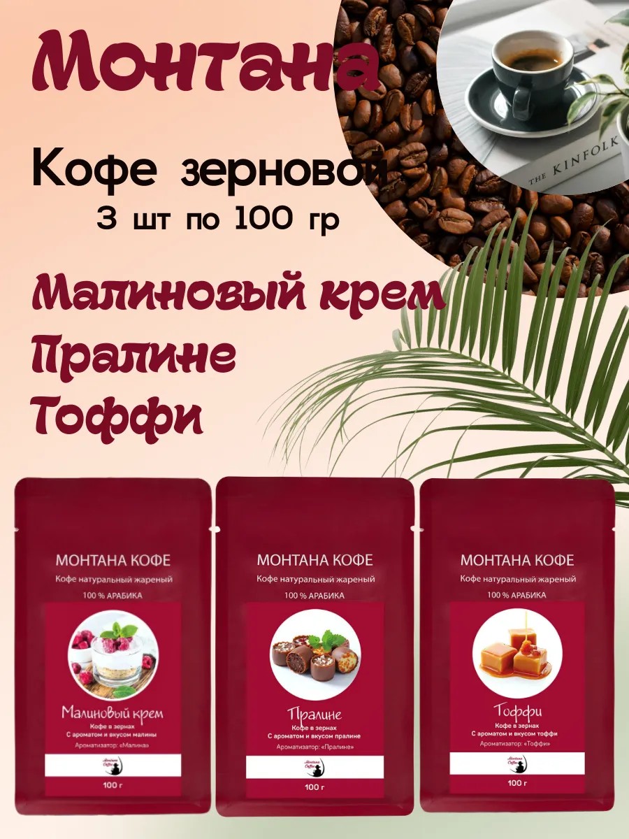 Кофе сет (в зёрнах) 300 гр (3*100г): Малиновый крем / Пралине / Тоффи - Монтана