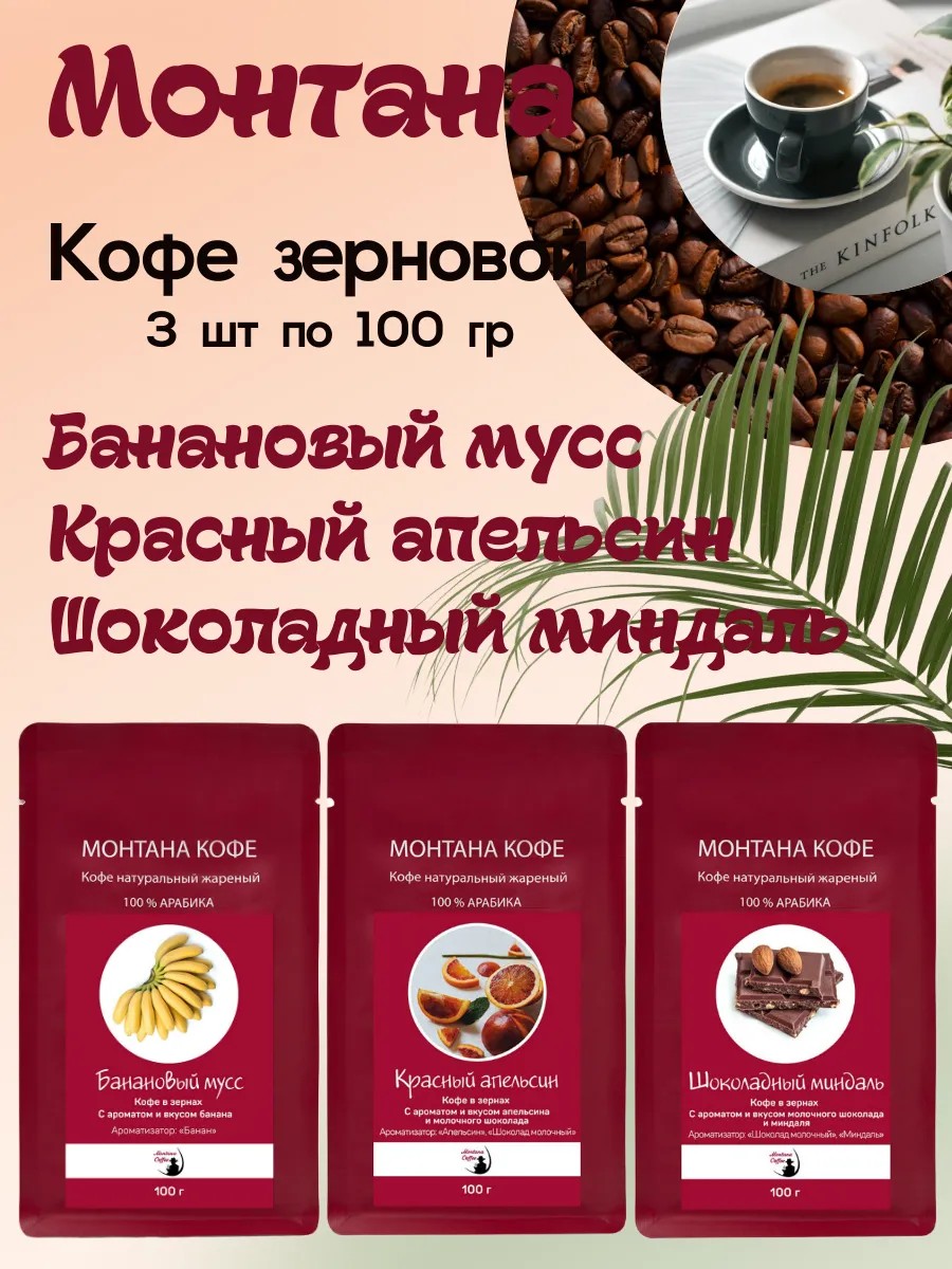 Кофе сет (в зёрнах) 300 гр (3*100г): Красный апельсин / Шоколадный миндаль / Банановый мусс - Монтана