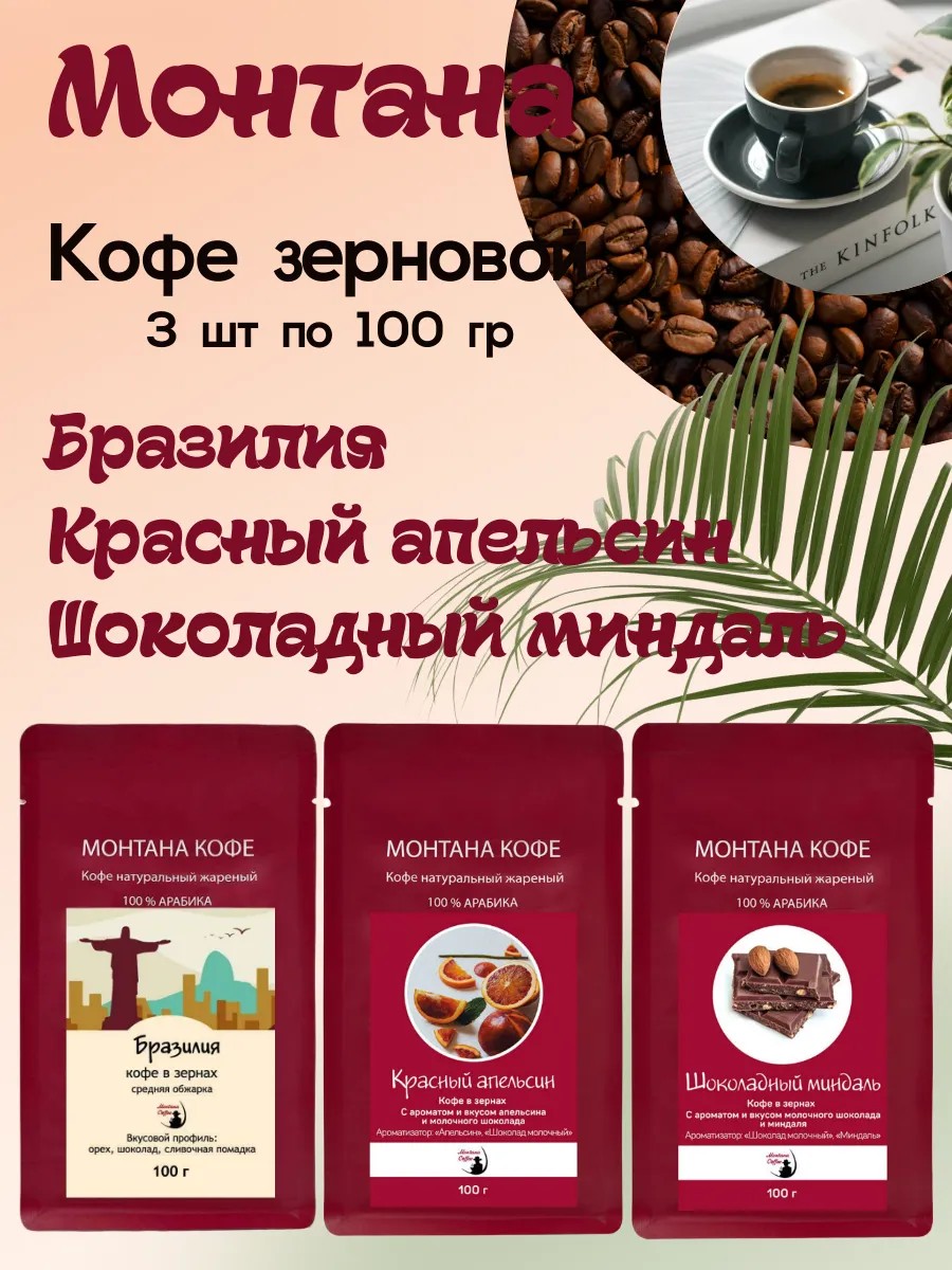 Кофе сет (в зёрнах) 300 гр (3*100г): Красный апельсин / Шоколадный миндаль / Бразилия - Монтана