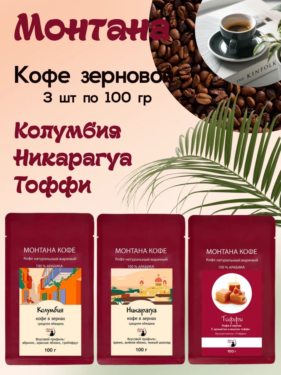 Кофе сет (в зёрнах) 300 гр (3*100г): Тоффи / Колумбия / Никарагуа - Монтана
