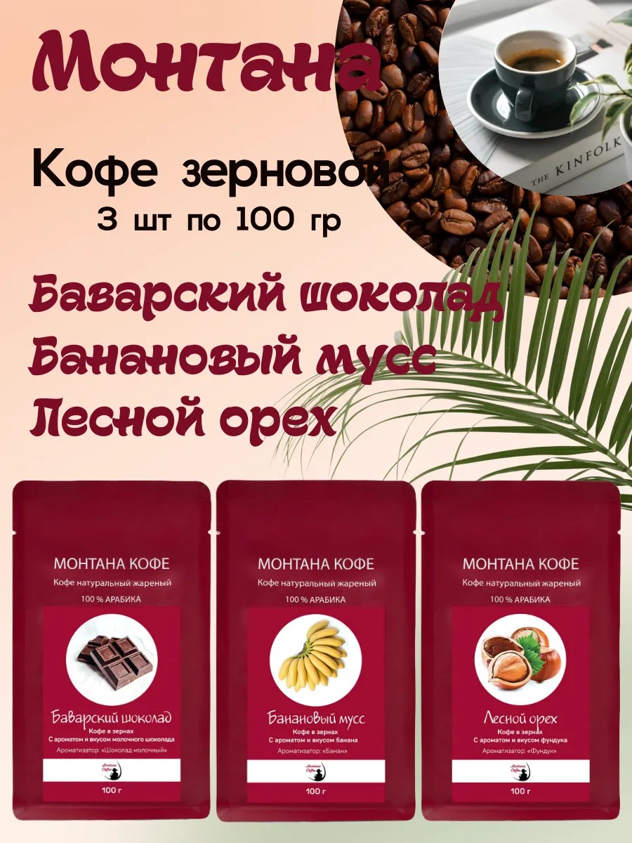 Кофе сет (в зёрнах) 300 гр (3*100г): Лесной орех / Баварский шоколад / Банановый мусс - Монтана