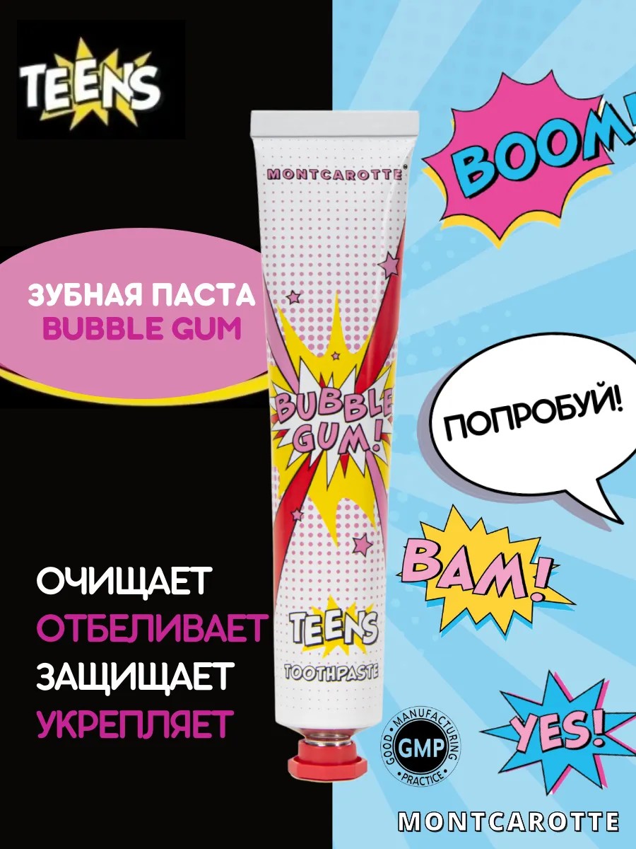 MONTCAROTTE Зубная паста Bubble Gum TEENS, со вкусом жвачки, Италия