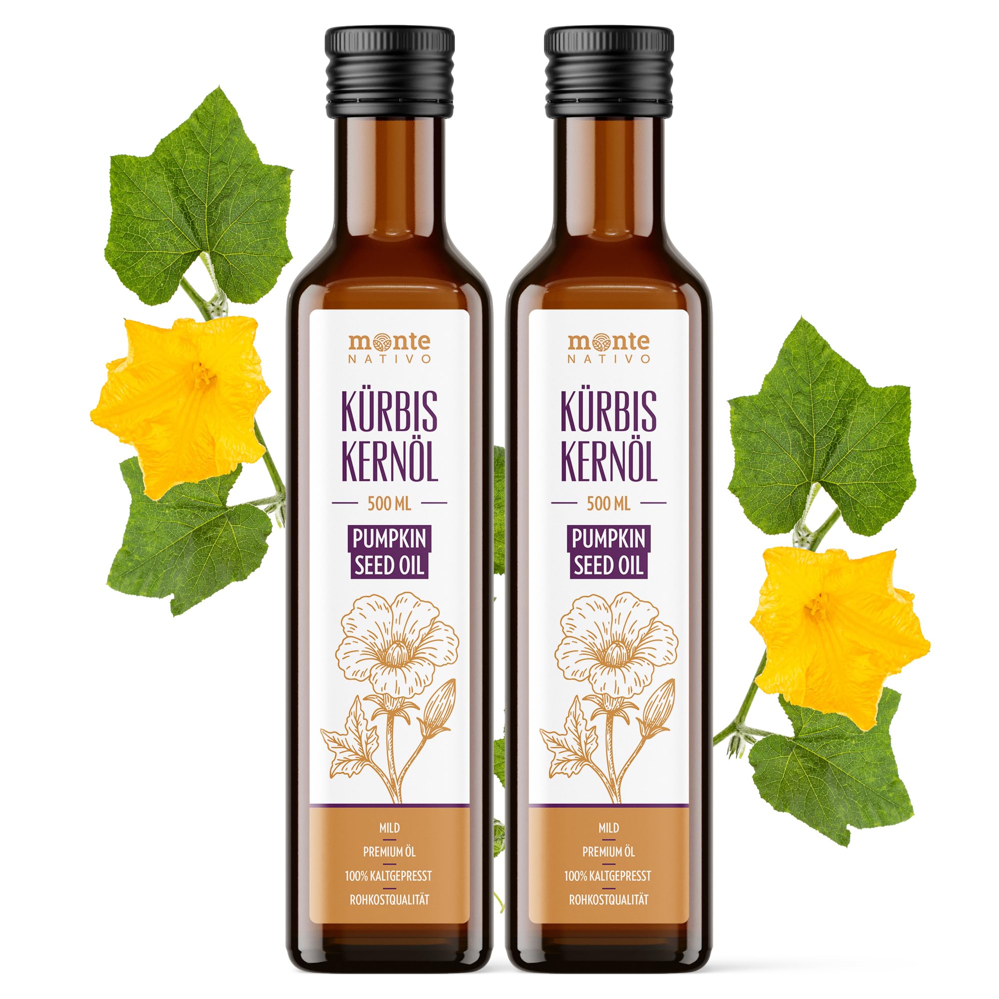 Enrich your daily routine with our premium pumpkin seed oil, crafted for those who value purity, authenticity, and careful production. Made with select, high-quality pumpkin seeds, this oil is cold-pressed to preserve its naturally rich, nutty flavor and vibrant green color, without the use of chemicals, solvents, or high temperatures. Our pumpkin seed oil is produced in controlled facilities that adhere to strict quality and hygiene standards. From seed selection to bottling, every step is carefully monitored to ensure a clean, high-quality oil. The result is a pure, single-ingredient product with no fillers, artificial flavors, or preservatives. Naturally rich in plant-based fatty acids and vitamin E, pumpkin seed oil is a versatile addition to a balanced lifestyle. Its mild yet robust flavor makes it ideal for complementing dishes, enhancing both simple and gourmet recipes. Use it to season salads, roasted vegetables, grains, and soups, or to enrich condiments and sauces, adding depth and richness. Beyond cooking, this oil can be used externally as part of your personal care routine. Many people enjoy applying a small amount to their skin or hair as a light plant oil. Packaged in a dark bottle, our pumpkin seed oil is protected from light to help preserve its natural characteristics, fragrance, and flavor from the first use to the last. Whether you want to enhance your culinary creations or incorporate it into your daily skincare ritual, this carefully crafted pumpkin seed oil delivers purity, quality, and versatility in every drop. INGREDIENTS Pumpkin Seed OilHuile de graines de citrouille Monte Native (2x500 ml) - Huile de citrouille pressée à froid, vierge et non raffinée - Acides gras oméga pour le bien-être et le soin de la peau - Idéal pour Kürbiskernöl 2x500mlDESCRIPTION DU PRODUIT DESCRIPTION DU PRODUIT Enrichissez votre routine quotidienne avec notre huile de graines de citrouille premium, conçue pour ceux qui donnent de la valeur à la pureté, à l'authenticité et à la fabrication soignée. Fabriquée avec des graines de citrouille sélectionnées de haute qualité, cette huile est pressée à froid pour préserver son goût naturellement riche et noyauté et sa couleur verte intense, sans l'utilisation de produits chimiques, solvants ou hautes températures. Notre huile de graines de citrouille est produite dans des structures contrôlées qui respectent des normes strictes de qualité et d'hygiène. De la sélection des graines jusqu'à la mise en bouteille, chaque étape est soigneusement surveillée pour garantir une huile propre et de haute qualité. Le résultat est un produit pur avec un seul ingrédient, sans remplisseurs, arômes artificiels ou conservateurs. Naturellement riche en acides gras d'origine végétale et en vitamine E, l'huile de graines de citrouille est un ajout polyvalent à un mode de vie équilibré. Son goût doux mais ferme le rend idéal pour compléter les plats, mettant en valeur les recettes les plus simples et gourmets. Utilisez-le pour assaisonner les salades, les légumes au four, les céréales et les soupes, ou pour enrichir les condiments et les sauces en donnant profondeur et rondeur. En plus de la cuisine, cette huile peut être utilisée à l'extérieur dans le cadre de votre routine de soins personnels. Beaucoup de gens aiment en appliquer une petite quantité sur la peau ou les cheveux comme une huile végétale légère. Emballé dans une bouteille sombre, notre huile de graines de citrouille est protégée par la lumière pour aider à conserver ses caractéristiques naturelles, son parfum et son goût de la première à la dernière utilisation. Que vous souhaitiez mettre en valeur vos créations culinaires ou l'intégrer dans votre rituel quotidien de soin, cette huile de graines de citrouille soigneusement travaillée offre pureté, qualité et polyvalence dans chaque goutte. INGRÉDIENTS Huile de graine de courge