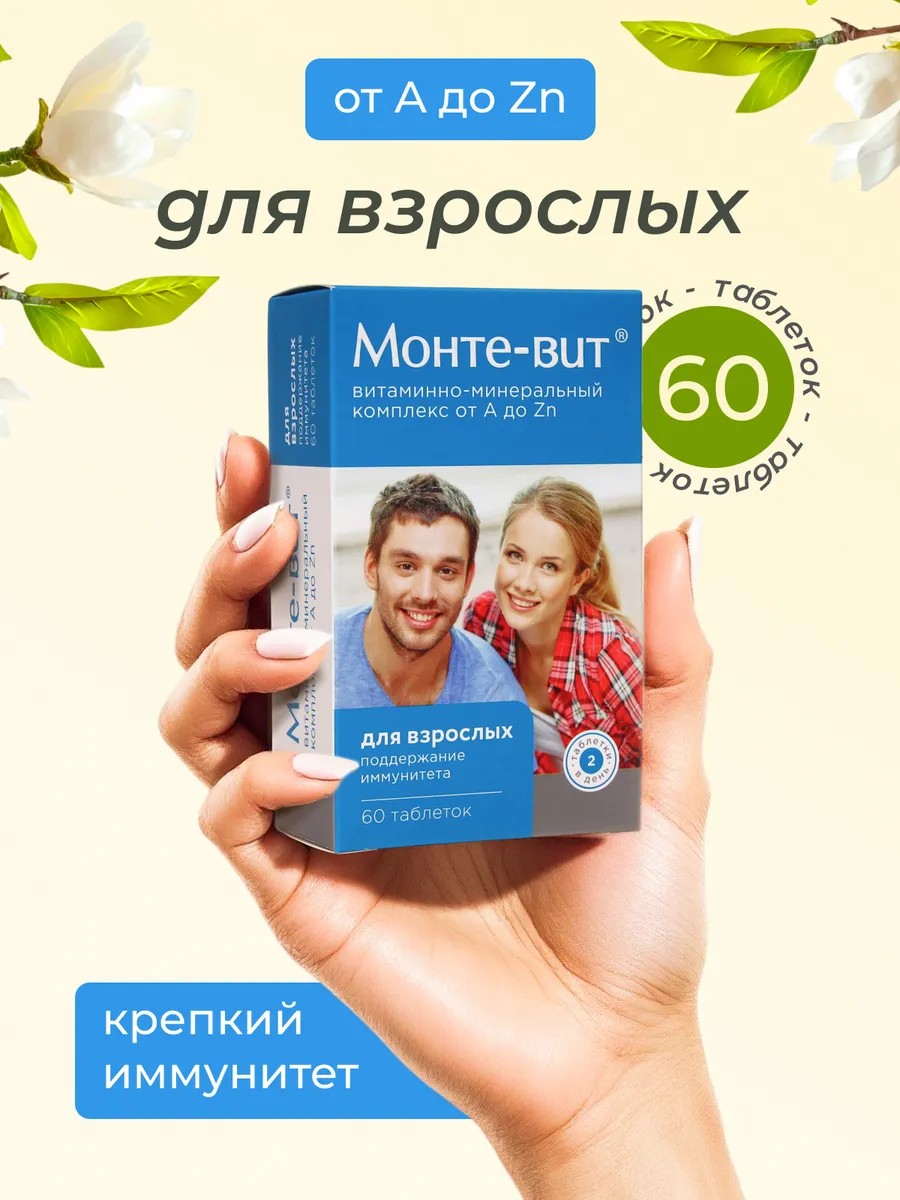 Мультивитамины для здоровья взрослых Монте-вит от А до Zn. В составе 13 витаминов и 10 минералов.