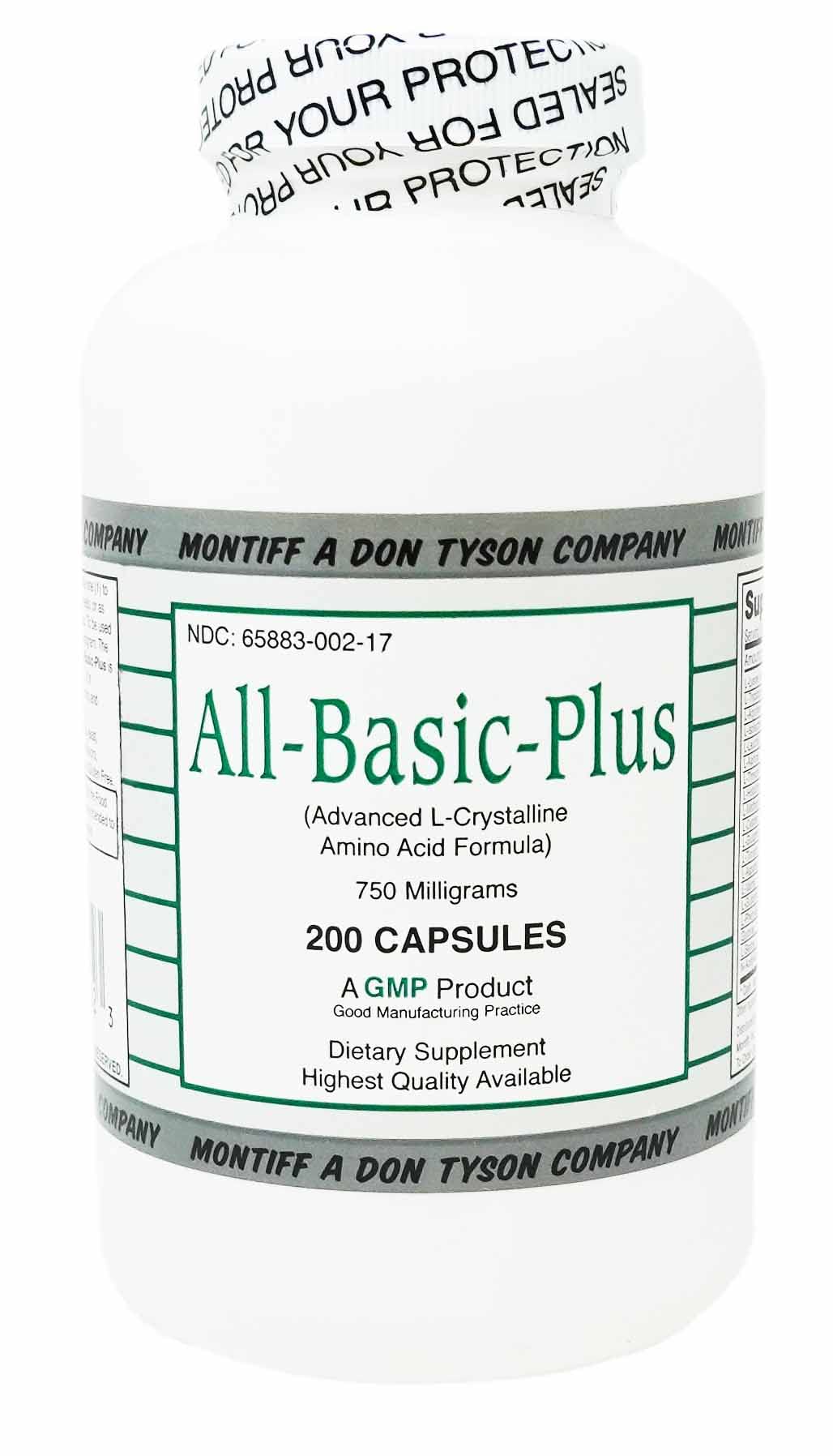 All-Basic-Plus is recommended to help provide the body's basic amino acid requirements. This product contains all of the ingredients in the All-Basic formula, plus L-Tryptophan. It is recommended that you take this product with B Complex Plus.