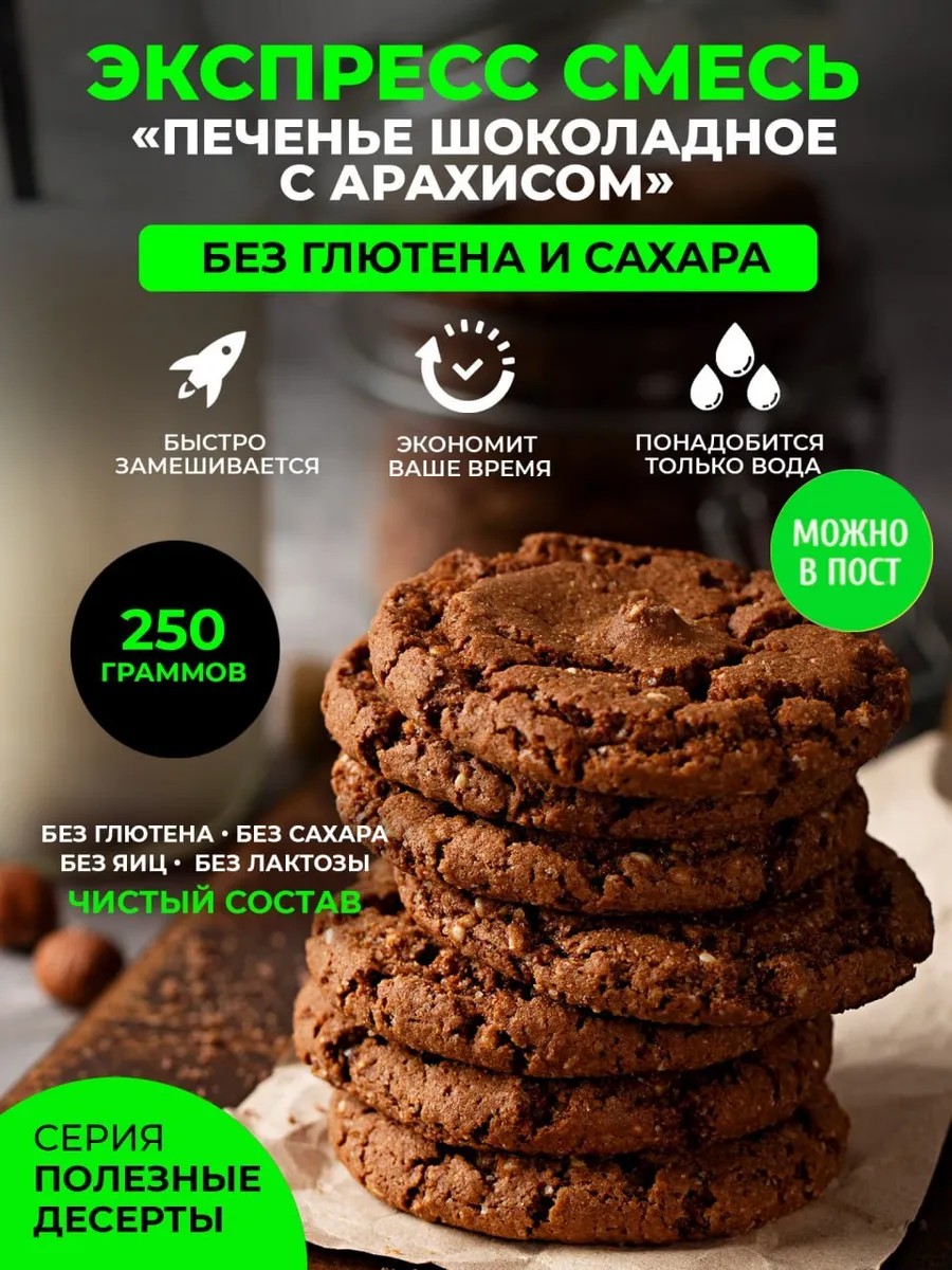 Смесь для выпечки печенье шоколадное без глютена без сахара
