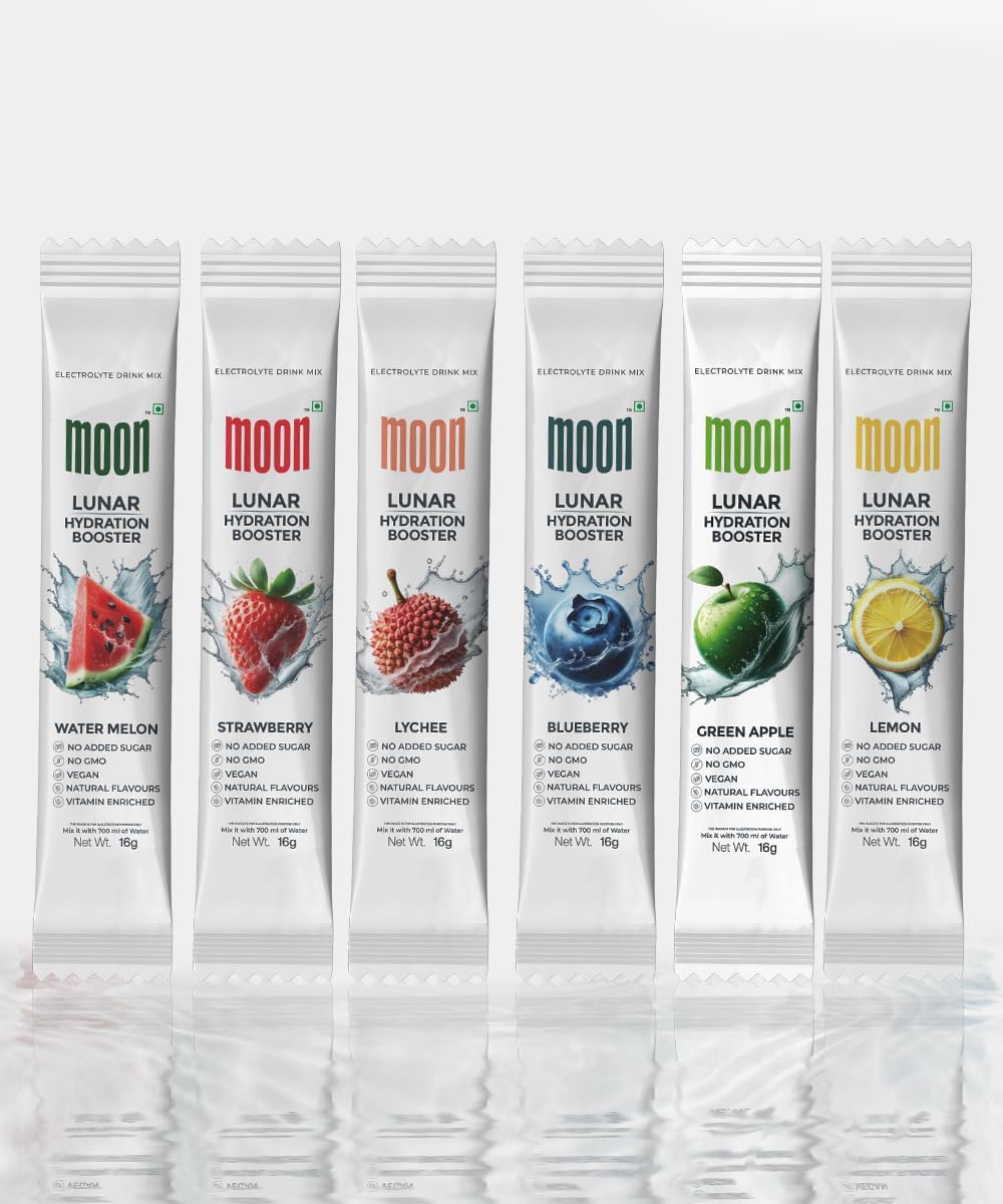 Stay refreshed and energized all day long with Moon Hydration Booster Variety Pack. This pack includes 18 individual sticks of premium hydration powders, each designed to provide quick and effective hydration without the added sugars. Our formula is packed with essential electrolytes, vitamins, and minerals, ensuring you stay hydrated, energized, and focused, whether you're at work, at the gym, or on the go. Each stick is carefully crafted to deliver a burst of natural, refreshing flavors to keep you hydrated and healthy. Perfect for those who follow a keto diet, are fitness enthusiasts, or just need a boost during long days. With zero sugar and a wide range of delicious flavors, this variety pack offers the perfect way to hydrate naturally without compromising on tasteNatural Flavors, No Artificial Ingredients: Enjoy clean hydration with natural flavors and no artificial sweeteners or preservatives, keeping your hydration healthy and pure. On-the-Go Hydration: Convenient 18-stick pack for easy hydration, whether you're at the gym, work, or traveling, without the extra calories or sugar. Electrolyte Vitamin-Packed: Stay hydrated with essential electrolytes like sodium, potassium, magnesium, and vitamins B and C in each hydration stick. Sugar-Free Keto-Friendly Hydration: Our hydration booster is perfect for low-carb diets with no added sugar, ensuring healthy hydration and better performance. 18 Hydration Sticks Variety Pack: Includes natural flavors like Lemon, Blueberry, Lychee, Watermelon, Strawberry, Greenapple, for a refreshing, sugar-free hydration boost anytime, anywhere.