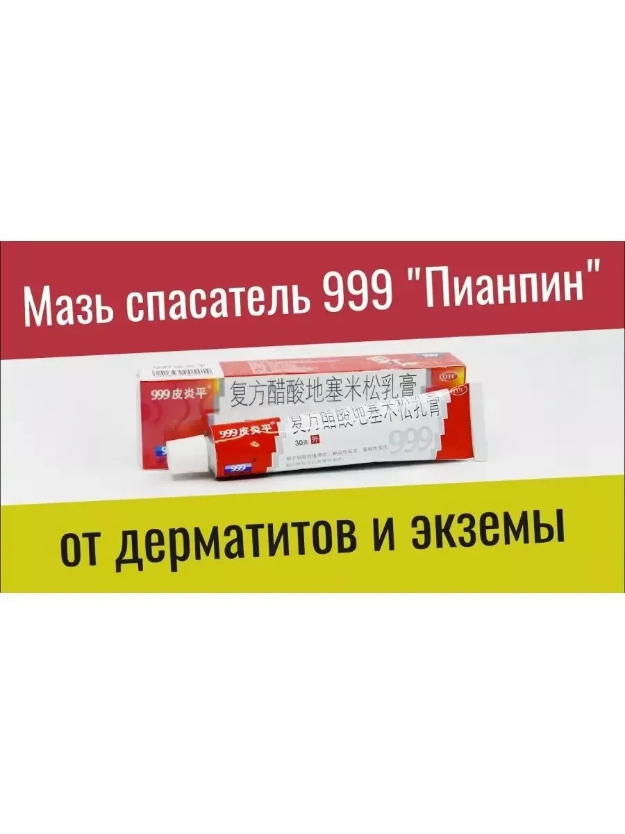 Мазь 999 Пианпин представляет собой препарат китайской медицины с сильным антисептическим, противовоспалительным, ранозаживляющим действием, предназначенный для лечения кожных бактериальных, вирусных и грибковых инфекций, эффективный против простейших.Рекомендуется при экземе, герпесе, псориазе, дерматозах, нейродерматозах, нейродермите и контактном дерматите. Препарат снимает зуд, жжение, боли, уменьшает воспаление, усиливает местное кровообращение, обладает антигистаминным эффектом. Применяется при рожистом воспалении, вызываемом стрептококками.Мазь оказывает помощь при юношеских прыщах и угревых высыпаниях, устраняет раздражение кожи, небольшие дефекты, повышает местный иммунитет, быстро устраняет последствия укусов насекомыми.Мазь помогает при вирусных поражениях кожи: контагиозном моллюске, вирусных бородавках.Эффективна при грибковых поражениях стоп и ногтей.