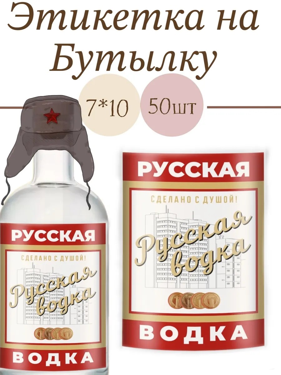 Этикетки "Русская водка" станут отличным дополнением к любому подарку или праздничному столу.