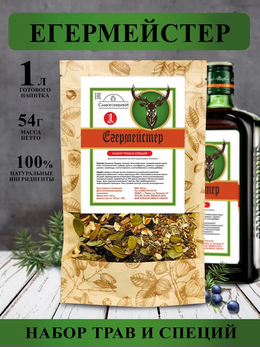 Нажмите на логотип магазина, чтобы увидеть другие настойки для самогона и новинки! В нашем ассортименте вы найдете разнообразные наборы для изготовления домашних настоек на самогоне. "Егермейстер", также как и другие наши наборы для настаивания на самогоне, содержит только натуральные природные ингредиенты. Рецепт: заливаем 1-2л самогона или водки крепостью 40 об. Настаивать "Егерь Мастер" в темном месте 20 дней периодически встряхивать. Процедить, влить в охлажденный сахарный сироп, сваренный из 125 гр сахара 125мл воды. Даем продукту отдохнуть.