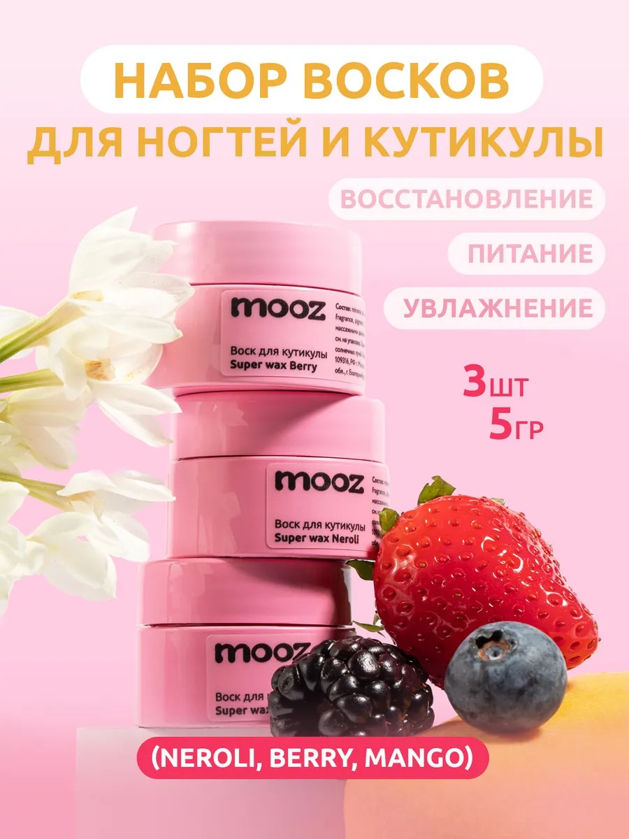 The set consists of 3 pieces: mango, berry, and neroli biowax for cuticles.