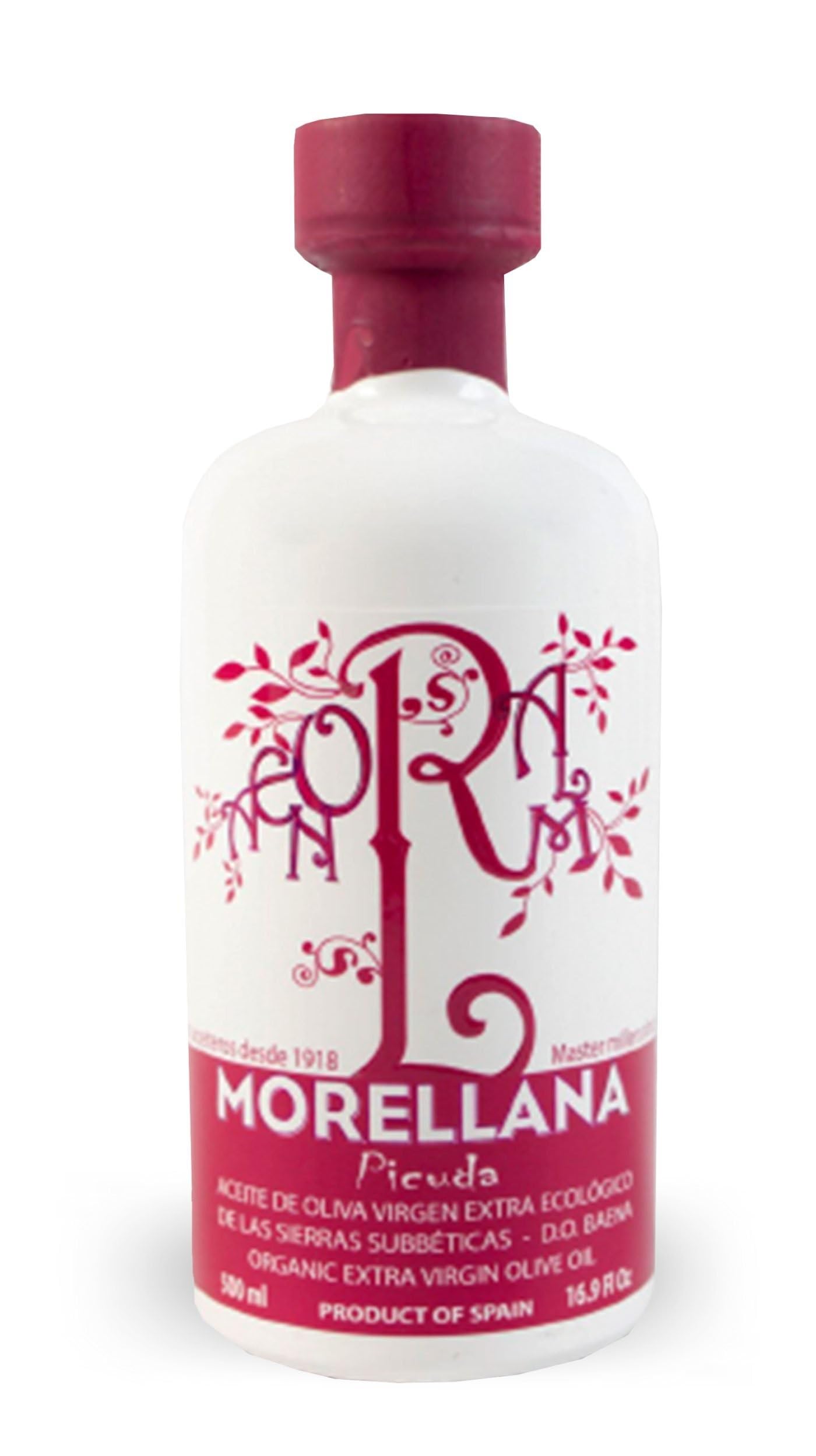 MORELLANA Huile d'olive vierge extra écologique AOVE Variété Picuda Bouteille en verre 500 ml.