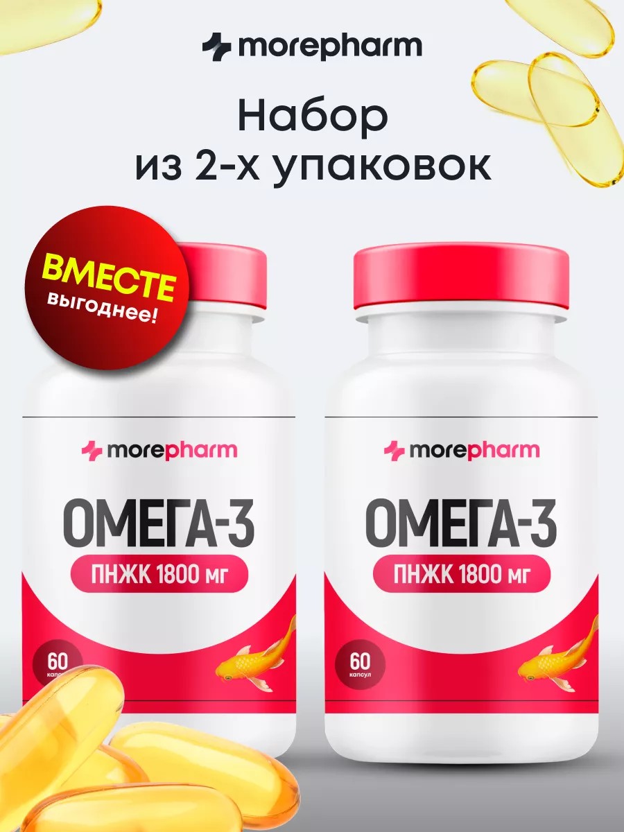 Что такое ЭПК и ДКГ? ЭПК (эйкозапентаеновая кислота), ДКГ (докозагексаеновая кислота) – это самые полезные виды жирных кислот. Чем больше содержание ЭПК и ДКГ, тем лучше! В Омега-3 morepharm содержание ЭПК и ДКГ в 1 капсуле 90%, что делает наш бад в разы эффективнее других.
