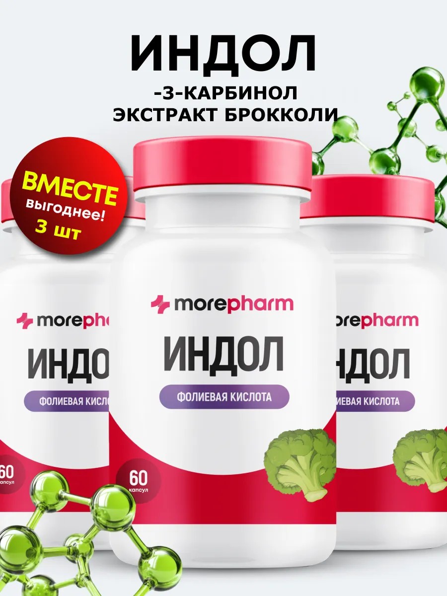 morepharm Индол 3 карбинол, фолиевая кислота,витамин в9, 3 упаковки