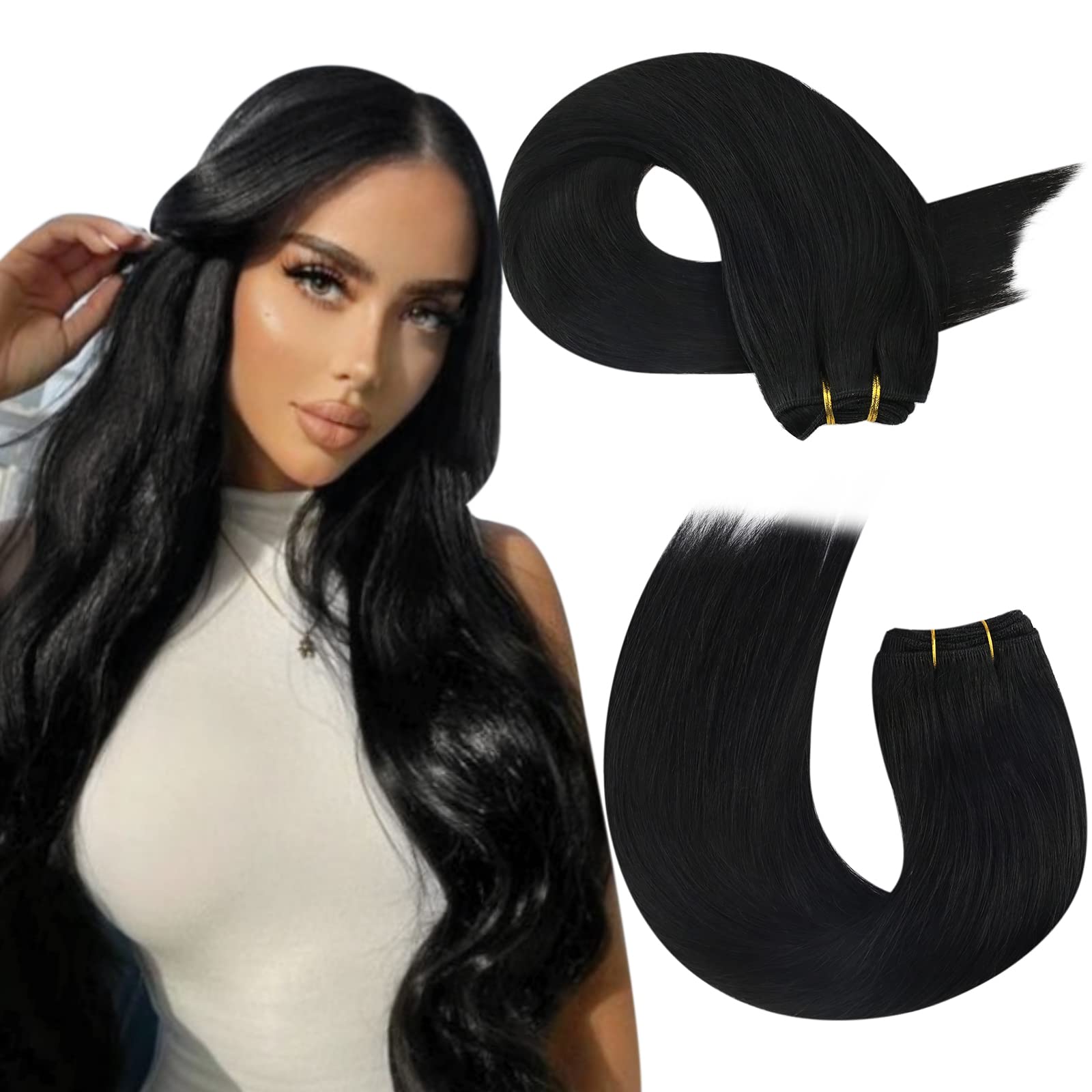 Moresoo Black Human Hair Extensions Weft Jet Black Sew in Hair Extensions 18 Inch Double Weft Hair Extensions 100g/Pack #1 18 Inch(Pack of 1) WEFT #1
