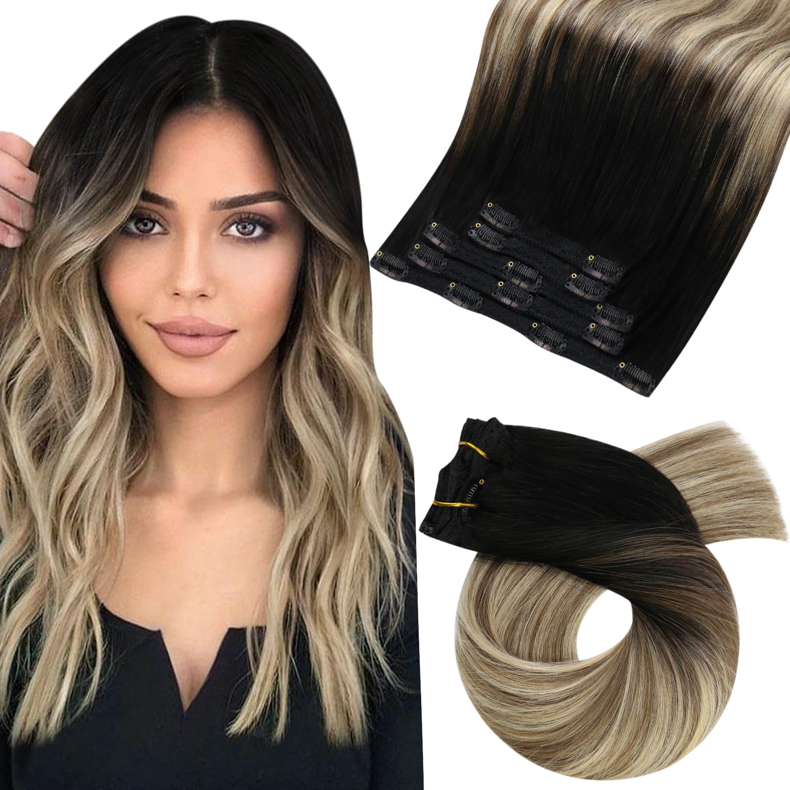 Moresoo clip in extensions real hair cheap black hair extreme real hair clips black to brown with medium blonde extensions real hair clip 25cm #1b/6/22 7PCs 80g 25 cm #1b/6/22