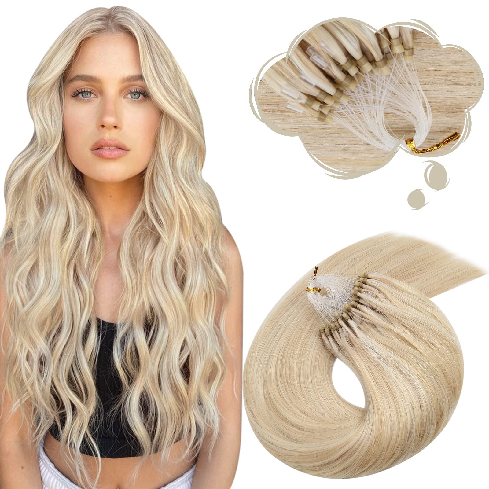 Moresoo Microring Extensions Echthaar Blond 35 cm Micro Loop Extensions Echthaar P14 613 Erdbeerblond Gemischt mit Platinblond Microring Extensions Blond Seidig Gerade 1g s 50g Pack 35 cm 1.Microring 14 613