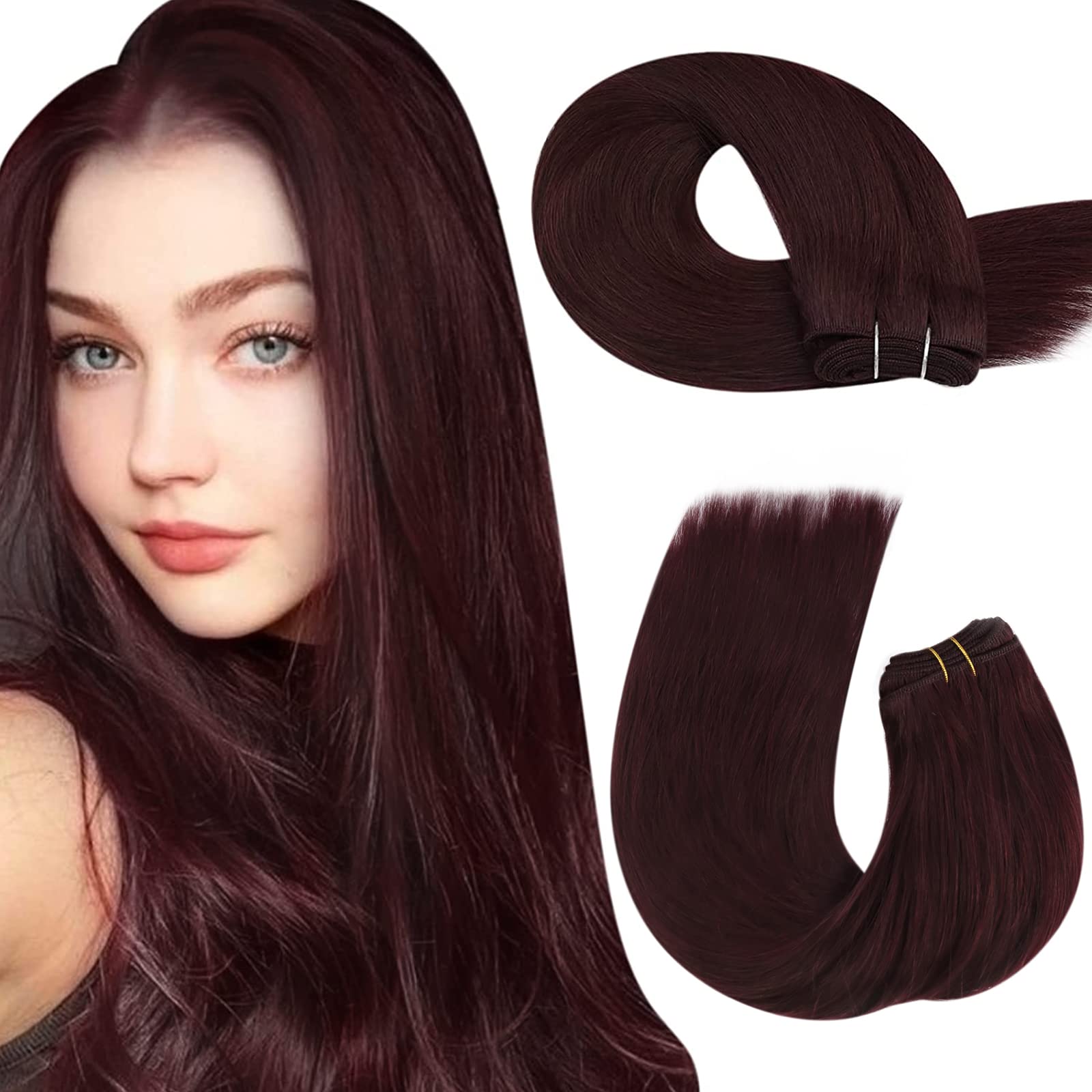 Moresoo Weft Hair Extensions Real Human Hair Burgundy Red Human Hair Extensions Weft Wine Red Sew in Hair Extensions 20 Inch 100g #99J 20 Inch(Pack of 1) WEFT #99J