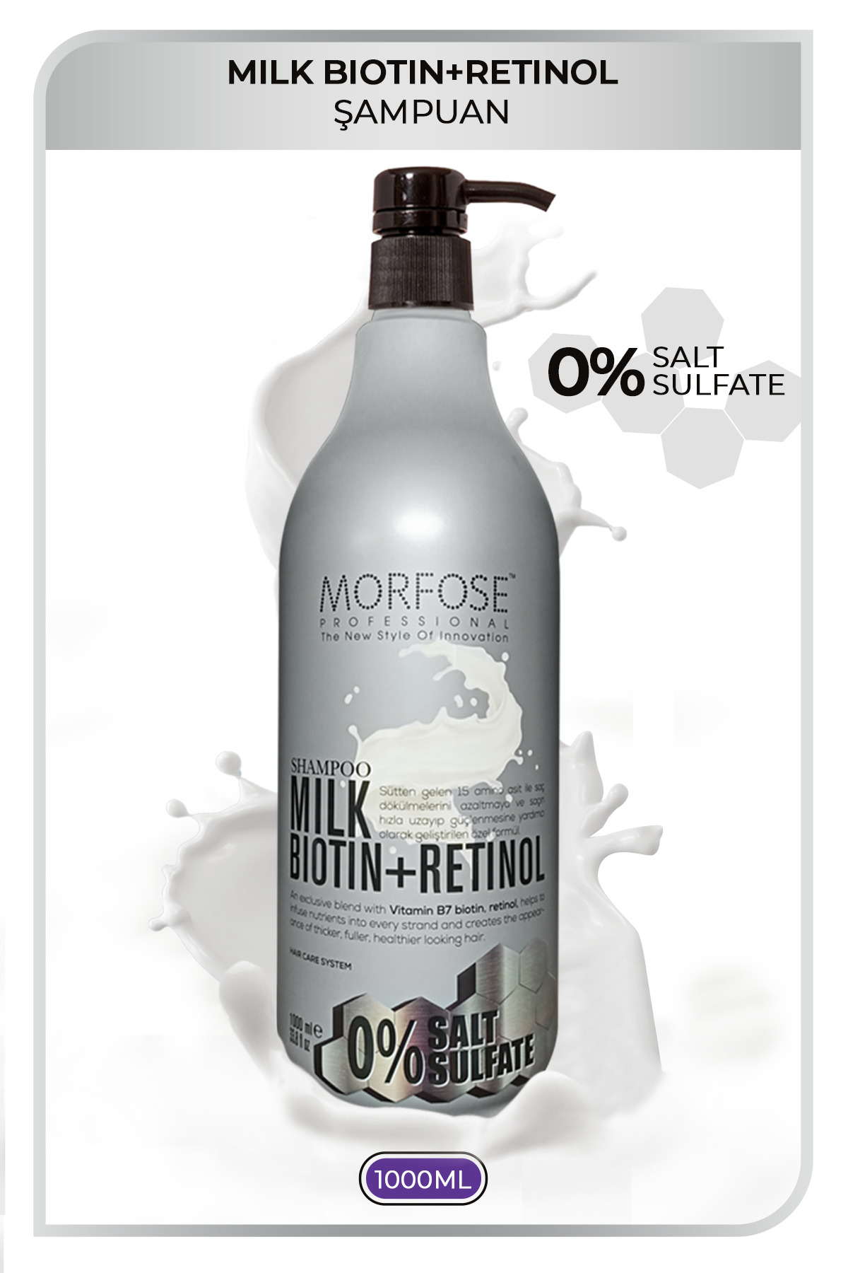 • Morfose Sülfatsiz Milk Biotin Retinol Içerikli Tuzsuz Sampuan 1000 ml