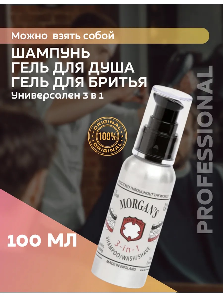 Morgan's 3-in-1 100 ml is a shampoo, shower gel, and shaving product.