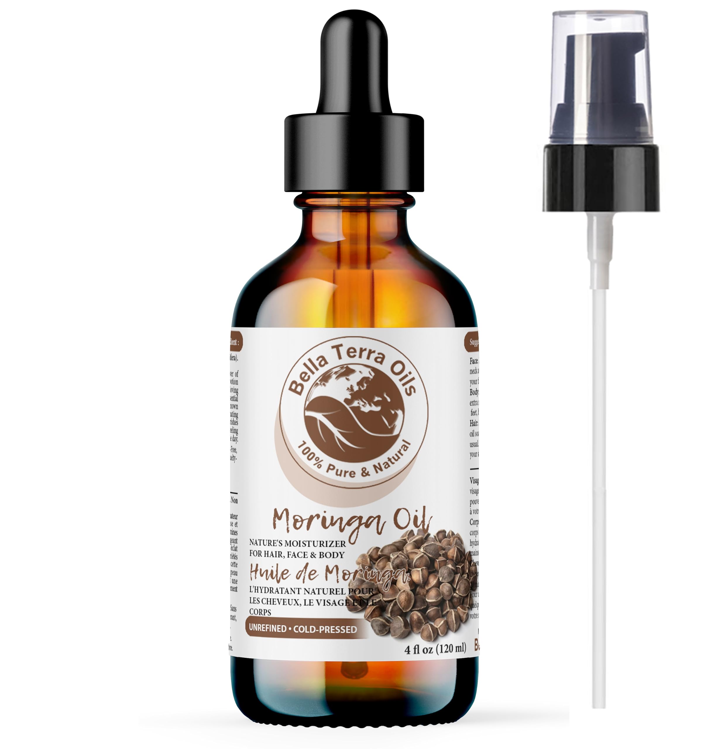 Moringa Oil. 120ml. Cold-pressed. Unrefined. 100% Pure. Anti-aging. Hydrates Skin & Hair. Seals in Moisture. Lightweight. Natural Moisturizer for All Skin Types